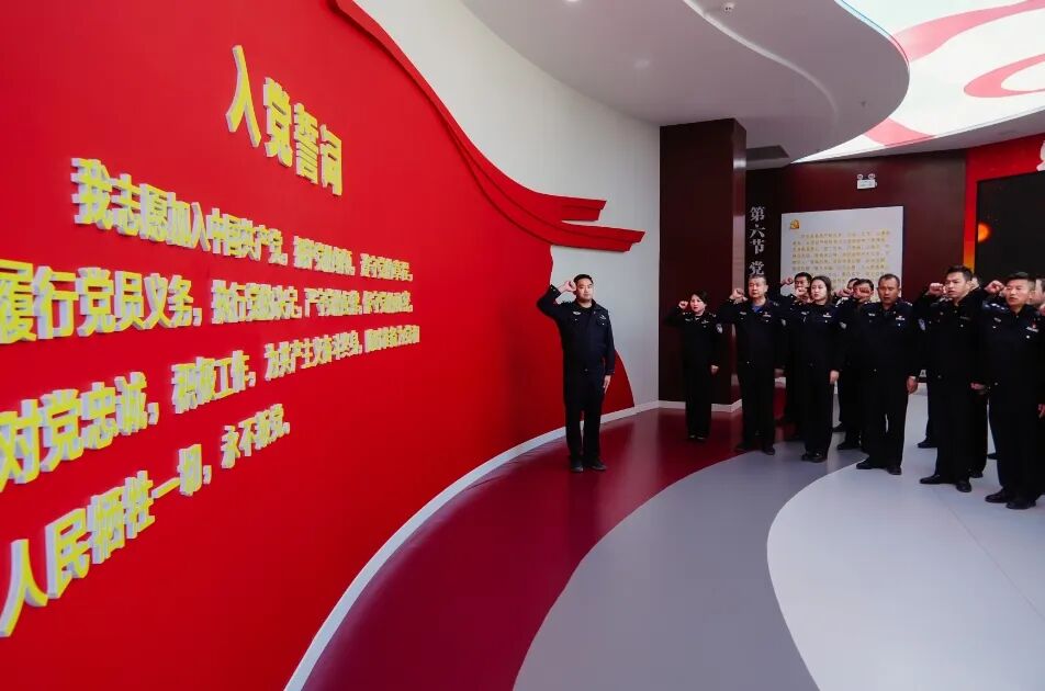 为深入贯彻落实中央八项规定精神,推动全面从严治党向纵深发展,5月15日,分局党委委员、政治处主任贾瑜斌,局属各部门关键少数领导干部、新入职民警及党员民辅警代表前往自治区廉政警示教育中心开展现场警示教育,面对党旗庄严宣誓,重温入党誓词。