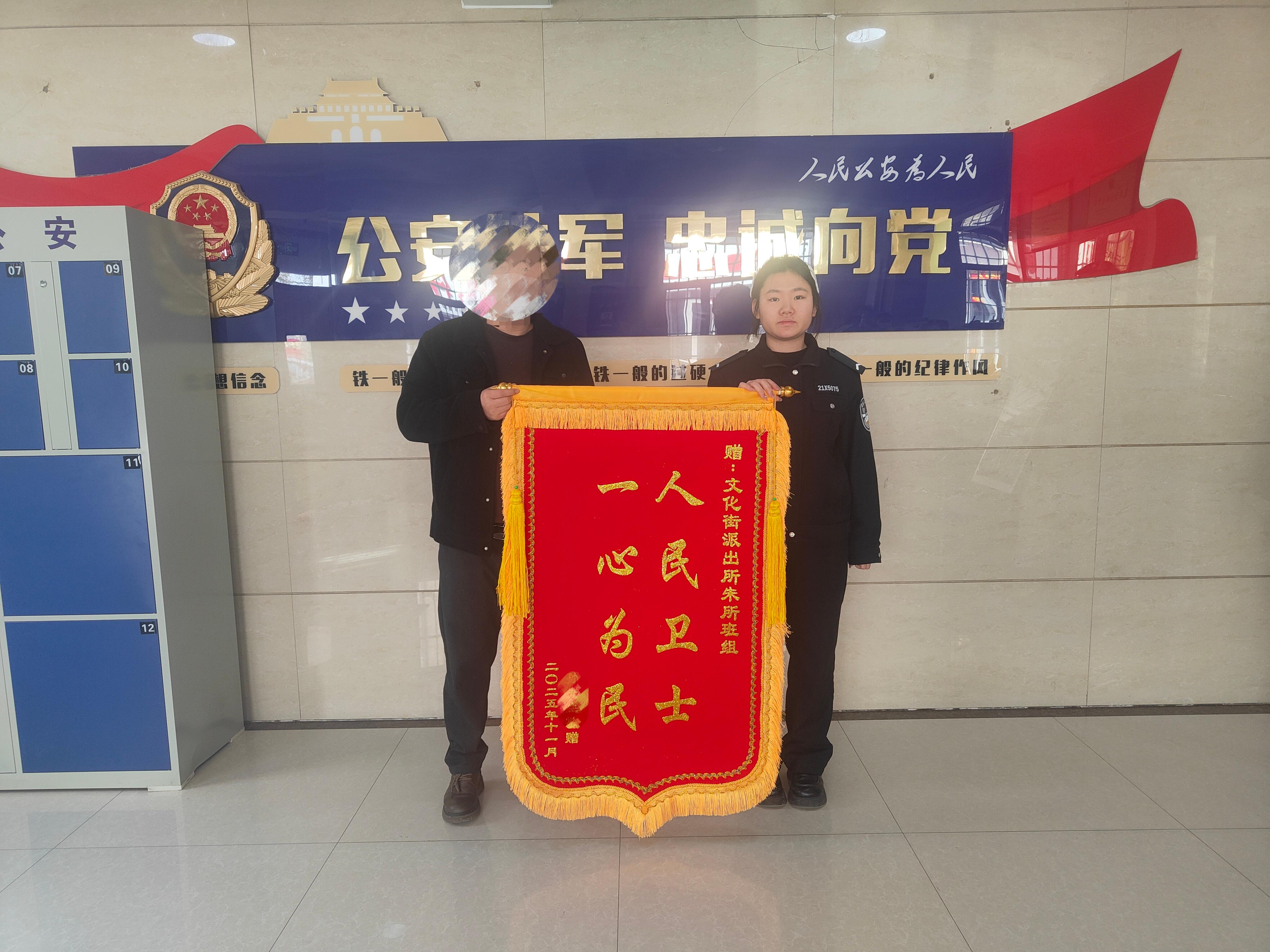 次日上午,为表达感激之情,李先生将锦旗送至文化街派出所。锦旗上“人民卫士 一心为民”八个大字,既是对民警工作的肯定,也生动体现了兴庆公安始终秉持以人民为中心的执法理念。他们以专业的执法能力和温暖的服务态度,践行着“警民一家亲,警民鱼水情”的庄严承诺。