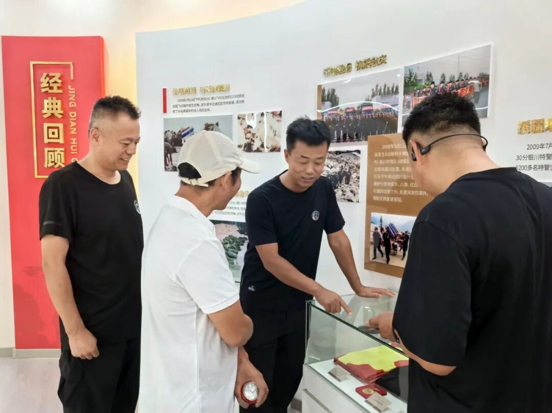 在战友们陪同下,黄先生参观了特警支队队史馆。经过“2008年抗震救灾”展区时,一张张泛黄的照片瞬间将大家拉回那个风雨同舟的夏天。“这张照片我记得,那天天气特别差,我们几个一起搬运物资,现在都记忆犹新……”黄先生心情激动、唏嘘不已。