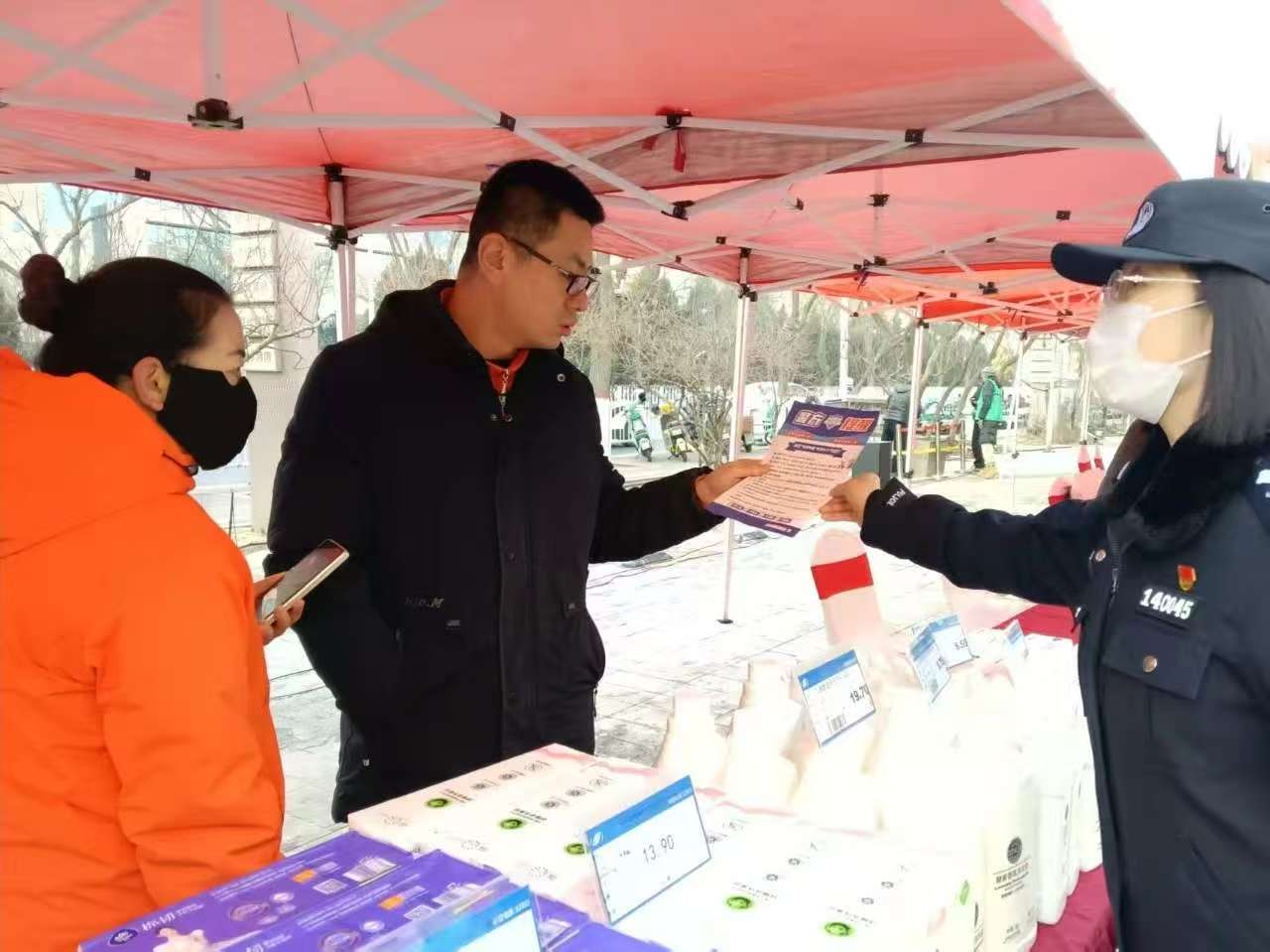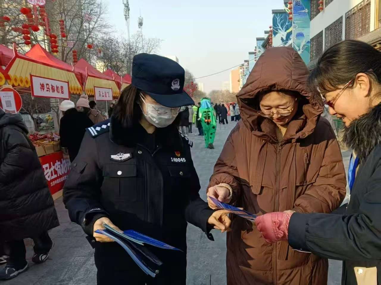 年关将近,民生花园附近的年货大集红火起来,空气里飘着炒货的香气和喜庆的喧嚷。在琳琅满目的摊位中间,银川市公安局金凤区分局北京中路派出所民生花园警务室的“摊位”有点特别——不卖糖瓜春联,摆出来的是一摞摞普法手册。民警和社区工作人员站在那儿,把反诈、禁毒的提醒,裹着热气腾腾的家常话,送给了来赶集的街坊。