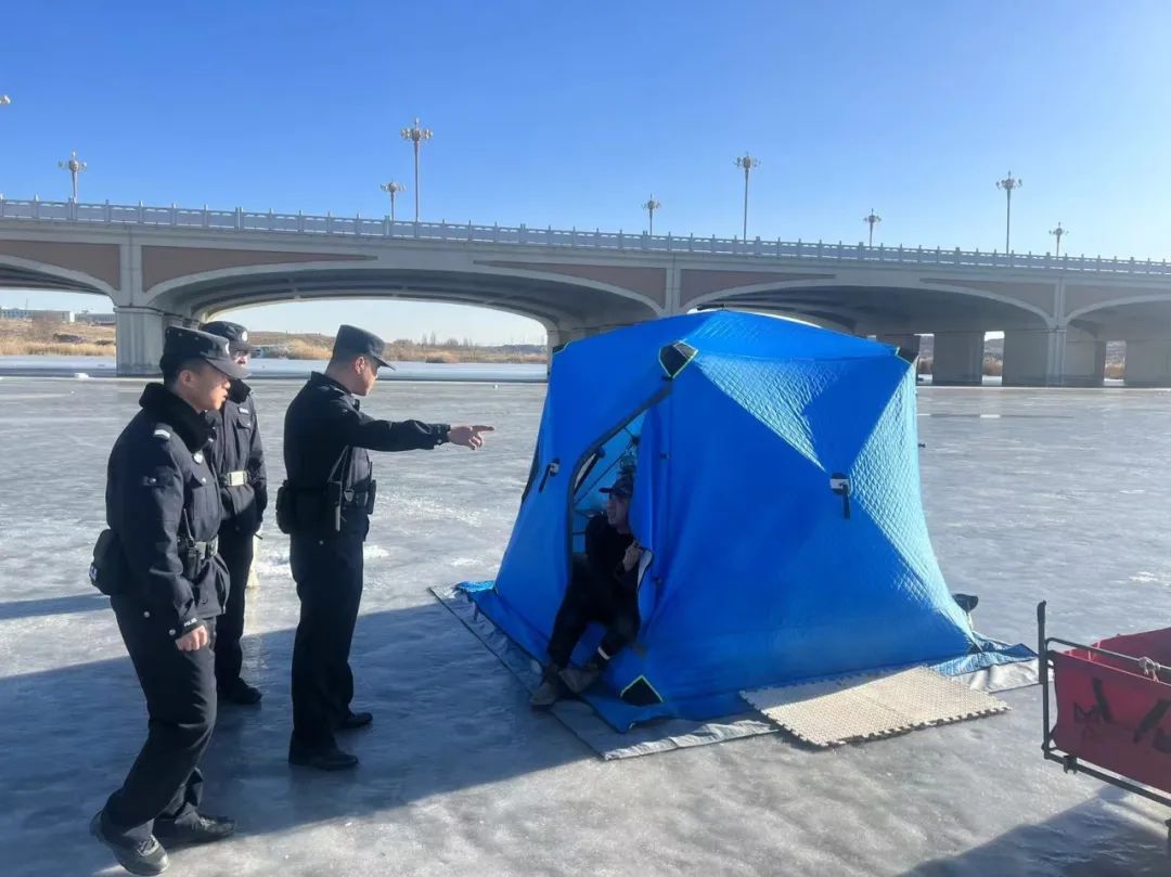 分局根据辖区水域特点,科学布警、显性用警,采用“人巡+车巡”模式,持续加大巡逻管控力度,针对易发生坠冰事件区域及人员密集区域重点开展常态化网格巡逻检查,及时劝阻涉险冰上游玩群众,全面提升水塘、湖面、沿河重点区域见警率、管事率。