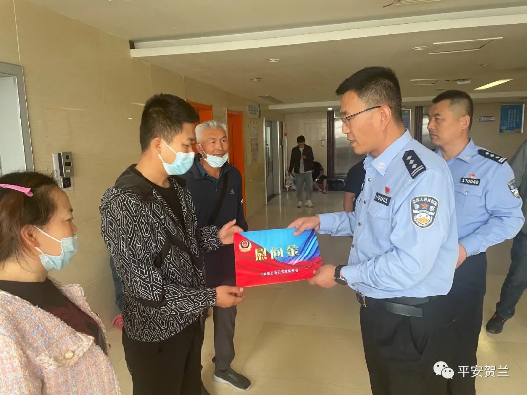 为进一步落实暖警爱警举措,积极解决民辅警实际困难,近日,贺兰县公安局组织全局民辅警开展了爱心捐款活动。贺兰县人民政府副县长、公安局党委书记、局长苏万君带领刑侦大队大队长吴刚一行前往医院看望辅警陈学胜一家,并将募集捐款交与陈学胜手中。