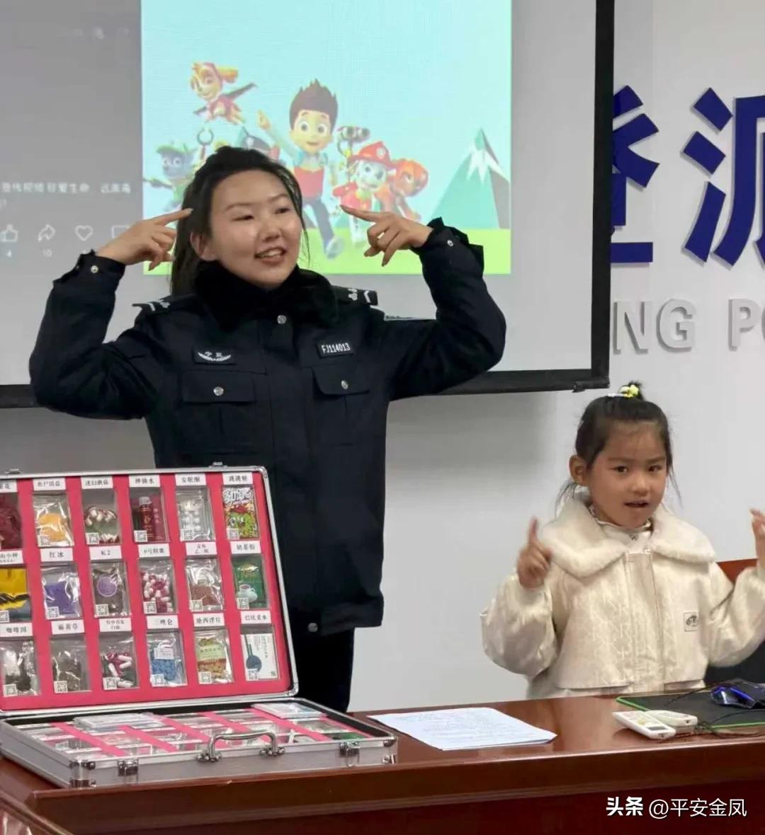 在民警的带领下,孩子们有序来到派出所二楼会议室,禁毒宣传也进入核心环节。考虑到幼儿难以理解“毒品”这类专业术语,王子豪巧妙转换思路,将毒品具象化为“坏东西”“可怕的病毒”,让孩子们快速建立认知。通过播放趣味十足的禁毒动画片《小破孩禁毒系列》之我是牛人,以及专为幼儿园孩子设计的禁毒宣传短片,再结合常见毒品的仿真样品模型,直观形象地向孩子们展示了“坏东西”的巨大危害。他重点提醒孩子们,这些“坏东西”常常伪装成“糖果”“巧克力”“漂亮饮料”等诱人模样,悄悄潜伏在身边,教育大家必须时刻保持警惕,坚决不接受陌生人递来的任何食品和饮料,只信任家人与老师提供的食物,牢牢守住安全第一道防线。