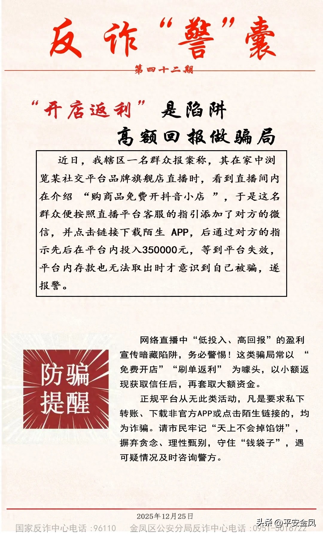 反诈“警”囊丨为开网店,Ta投了35万