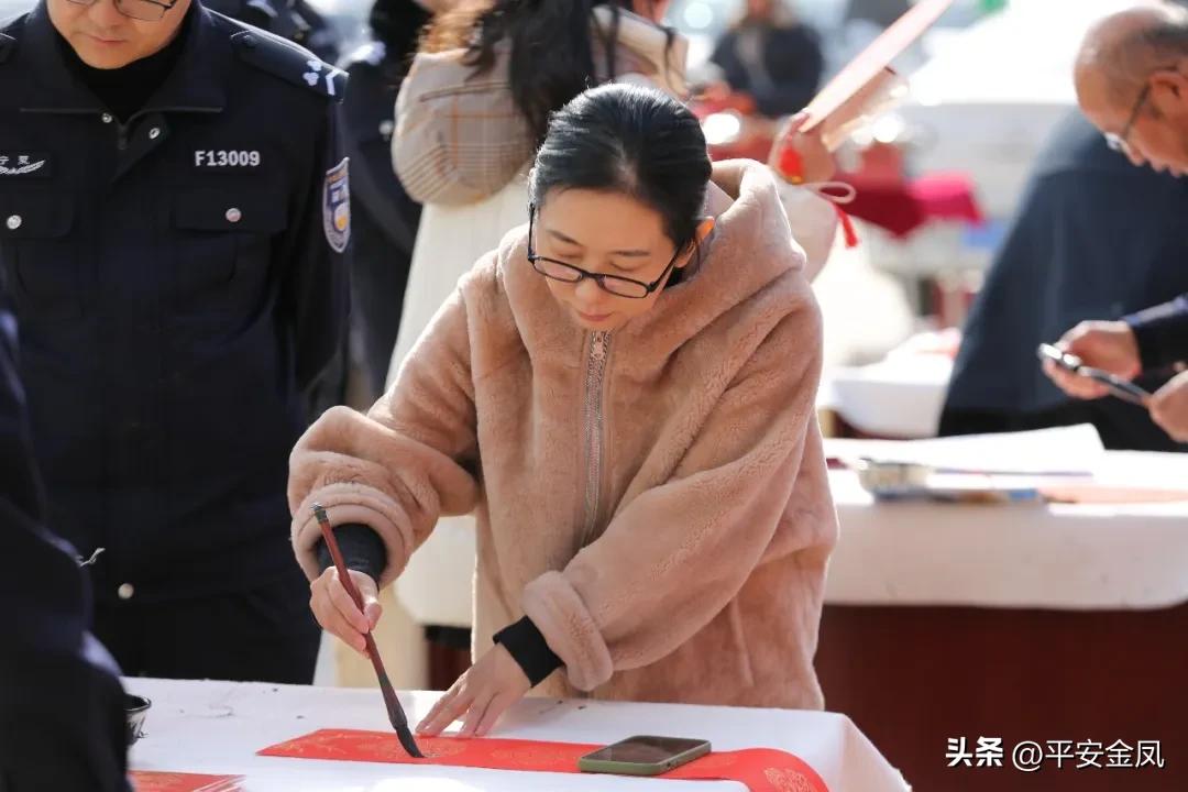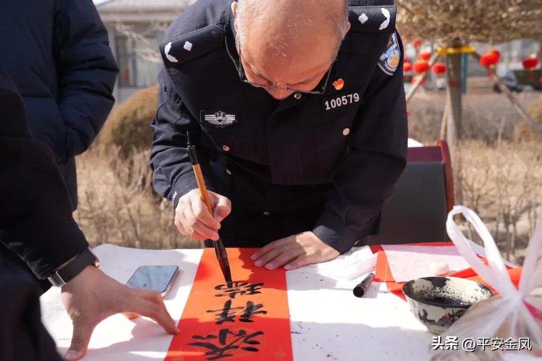 笔墨飘香处,最是暖警时。活动现场另一侧,书法老师们铺纸研墨、笔走龙蛇,将藏蓝初心与马年吉祥寓意凝于笔端,书写在一张张喜庆的红纸上。“警魂铸盾护金凤,马蹄踏雪报平安”,一幅幅兼具公安特色与新春祝福的春联,一个个刚劲有力、喜气满满的福字,刚劲有力、墨韵生辉。民警辅警们有序等候、笑意盈盈,捧着墨迹未干的春联与福字,不仅为警营增添了浓浓的年味儿,更将组织的关怀与温暖真切装进了心里。