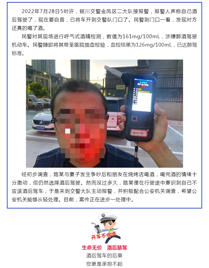 夏季治安打击整治“百日行动” | 银川一司机酒后驾车来交警队自首:“警察同志,我酒驾了!