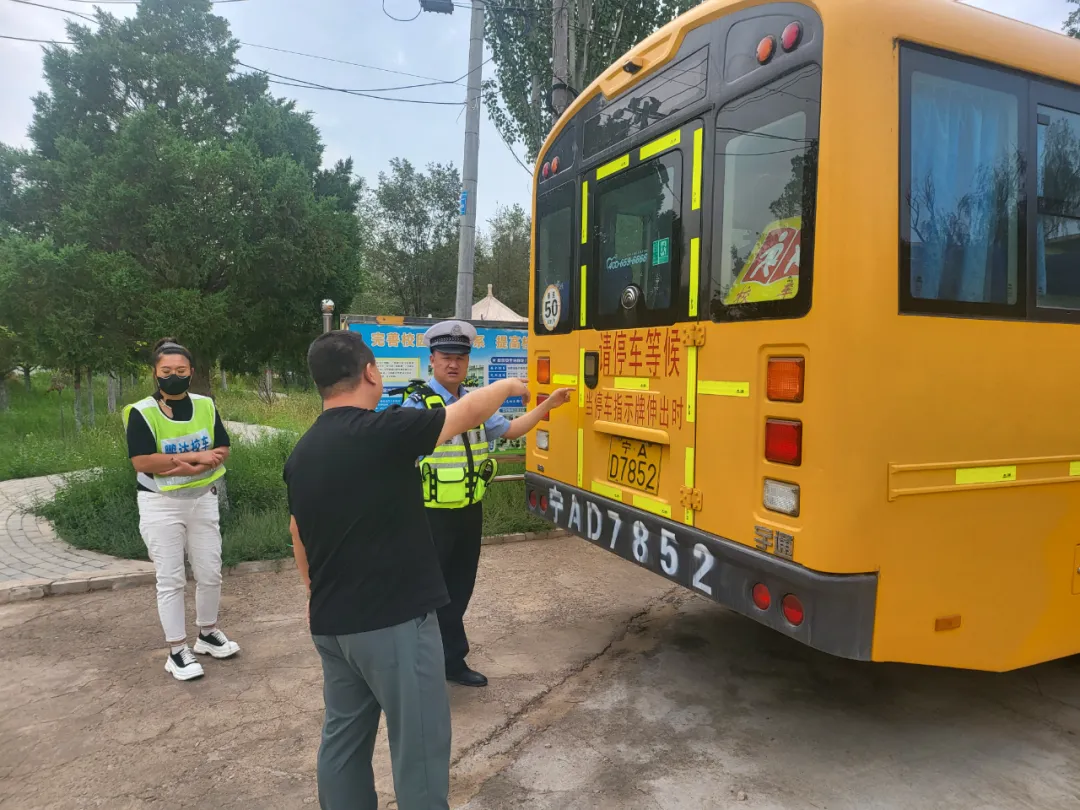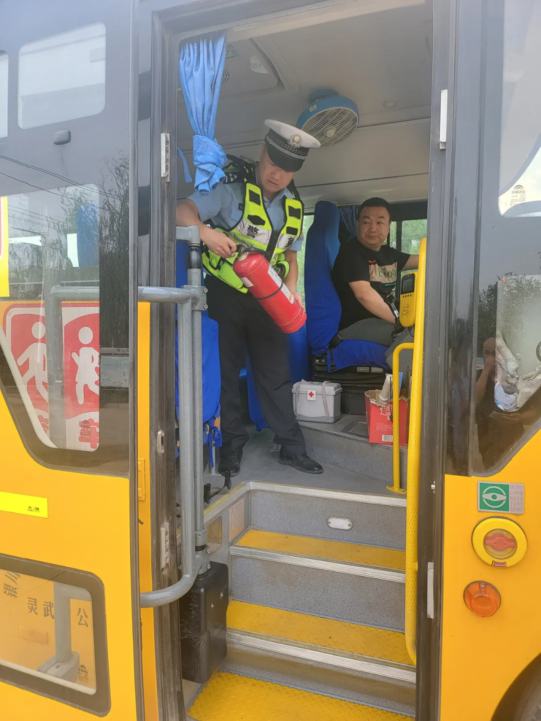对校车进行全面检查,逐一核对行驶证、保险标志、检验合格标志等有效凭证,并仔细检查轮胎磨损情况以及安全带、灯光、三角架、安全锤、灭火器等安全设施,对存有问题的校车责令所属企业、单位限期整改。