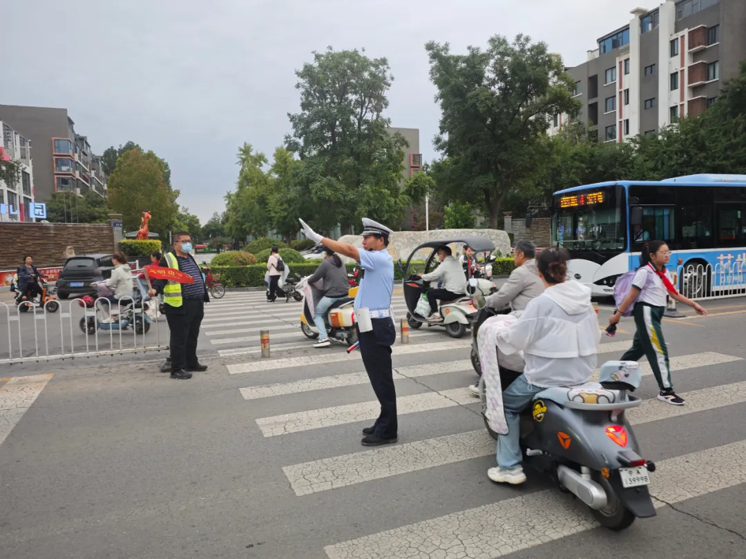 针对上学放学时段接送学生的家长多、车辆多,容易造成校园周边道路交通拥堵的情况,执勤交警提前到达护学岗,加强校园门口及周边交通管控疏导,全力保障校园道路交通安全有序,为学生上学“保驾护航”。
