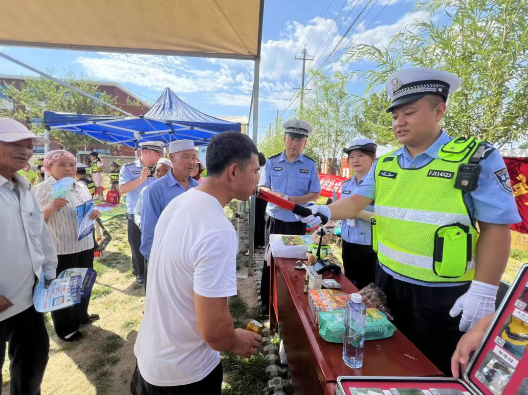 活动现场热闹非凡,形式多样。民辅警通过宣讲交通安全知识、悬挂醒目横幅、摆放宣传展板、发放实用交通安全宣传资料,以及设置充满趣味的交通安全游戏体验环节等方式,全方位地向广大群众普及交通安全知识。深刻讲解超员超载、骑乘摩托车和电动车不戴安全头盔、驾乘汽车不系安全带、三轮电动车违法载人等道路交通违法行为的巨大危害,引导村民养成自觉遵守交通安全法律法规的良好出行习惯。