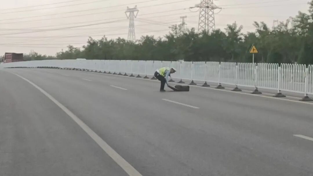 交警冒险清除保畅通