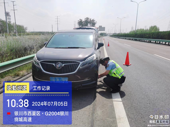 7月5日10时30分许,银川交警绕城大队民警在南绕城路段巡逻时发现一辆小型汽车停在应急车道,驾驶员在车旁显得很慌张。