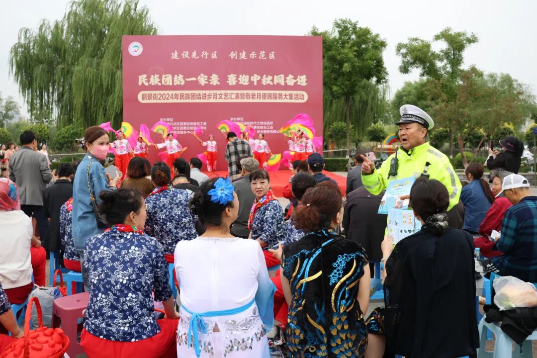 通过面对面讲解及发放宣传资料等形式,向社区群众重点讲解如何正确通过斑马线、骑电动自行车应注意的事项,警示他们牢固树立安全第一的思想,特别是中秋节期间,外出机会多,亲朋聚会多,自觉抵制各类交通违法行为,谨慎驾驶、安全出行。