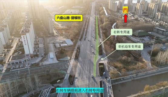 特别提醒:右转的机动车通过唐徕渠桥后根据指示标志需提前进入右转专用道通行,非机动车通过唐徕渠桥后根据指示标志进入非机动车专用道通行。