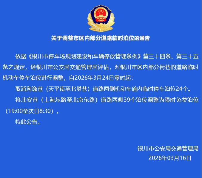 关于调整市区内部分道路临时泊位的通告