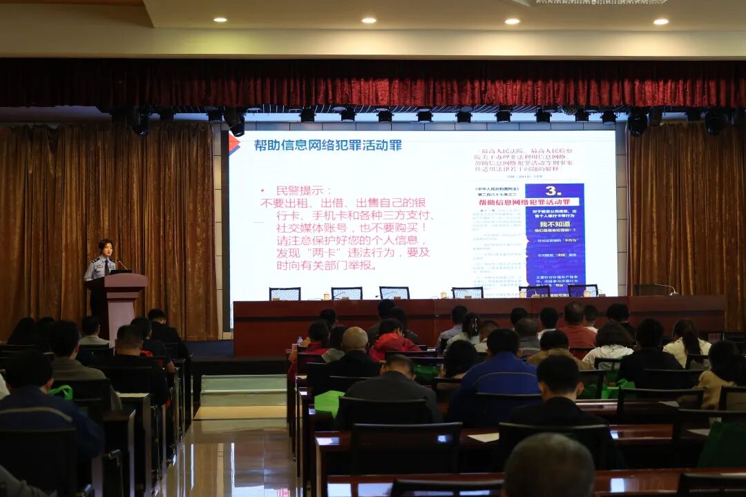 为切实做好中秋、国庆双节期间企业安全与反诈防范工作,确保辖区群众度过安定祥和的假期,9月24日下午,经开区公安分局在宁夏光彩职业学院礼堂召开“经开区公安分局企业安全与反诈防范工作会议”。分局相关工作负责人、经开区管委会应急管理局、派出所全体民辅警及辖区企业代表共计300余人参加会议。