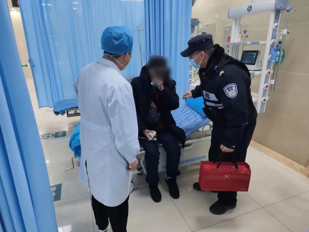 因老人家属都在外地工作,无法赶回来照顾老人,处警民警全程陪同老人。付款、就诊、检查、取药等无微不至。