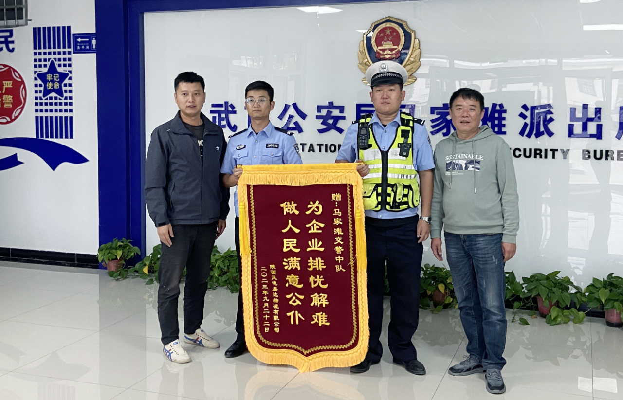 近日,“大风车”叶片承运单位陕西风电易达物流有限公司将写有“为企业排忧解难,做人民满意公仆”的锦旗送到了灵武交警大队马家滩中队民警手中,感谢中队民警辅警为其名下的运输大件车辆过境提供暖心护送服务。