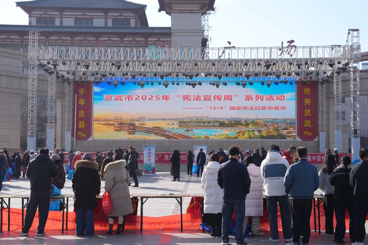 为深入学习宣传习近平法治思想,大力弘扬宪法精神,切实增强群众法治意识和安全防范能力,12月4日上午,灵武市公安局组织法制、政工、刑侦、经侦、交管、禁毒、派出所等多部门警力,深入辖区核心广场、人流密集区域,开展以“宪法宣传+公安知识普及”为主题的普法宣传活动,用接地气的方式将法律知识、安全锦囊送到群众身边。
