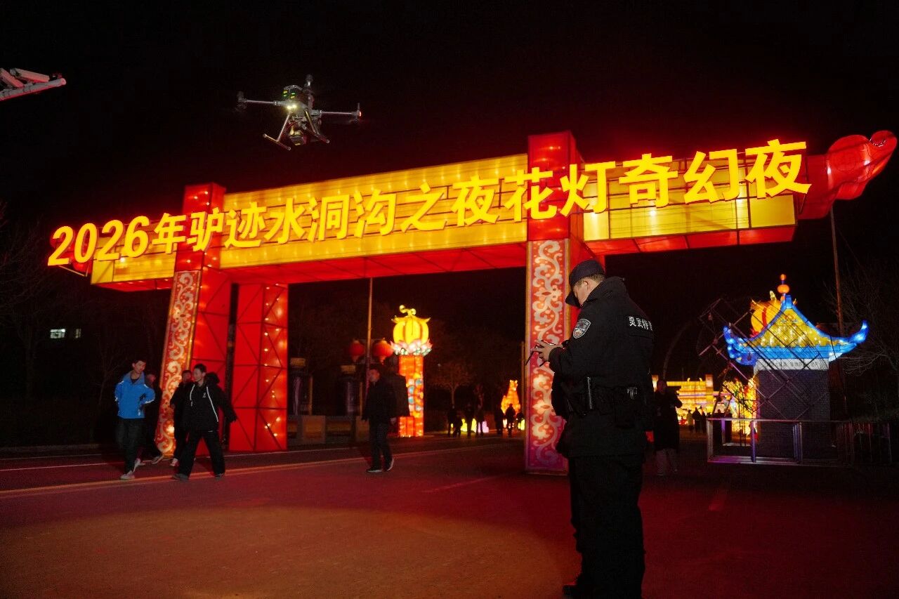 为守牢群众“钱袋子”,灵武市公安局特警大队创新宣传方式,启用警用无人机开展空中反诈宣传。无人机盘旋于花灯上空,扩音器循环播放反诈提示,清晰洪亮的声音穿透熙攘人群,让赏灯市民在感受新春年味的同时,同步筑牢安全防线。