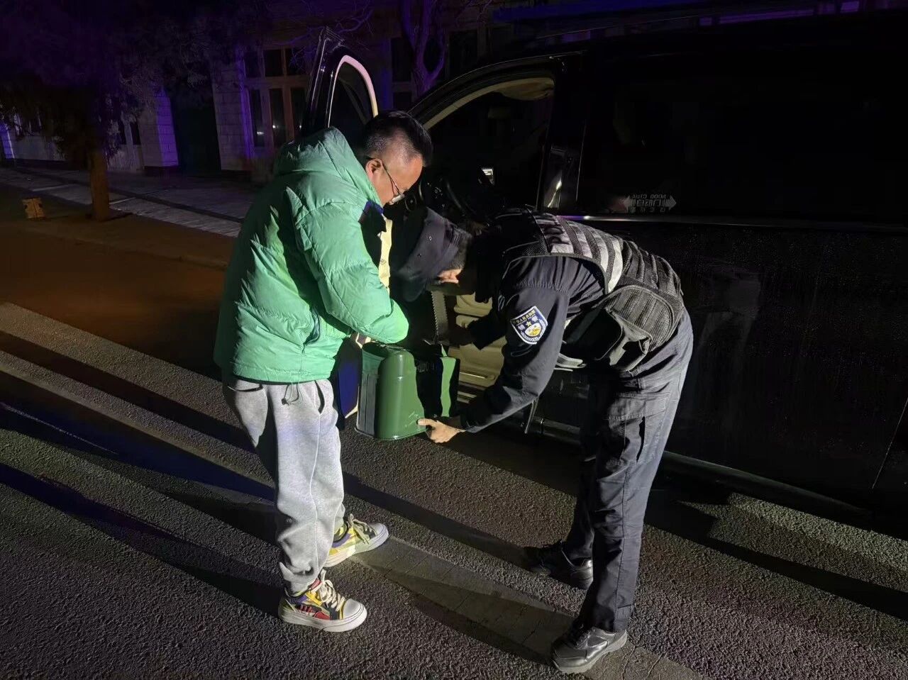 同日,崇兴派出所民辅警在辖区开展夜间日常巡逻时,发现一辆商务车因燃油耗尽停在路边。驾驶员因路况不熟、手机没电,无法联系救援,情绪十分焦急。巡逻警员第一时间上前安抚,主动驾车协助购买燃油,并先行垫付油费,帮助车辆顺利启动、安全上路。驾驶员连声道谢,对民警的及时相助深表感激。