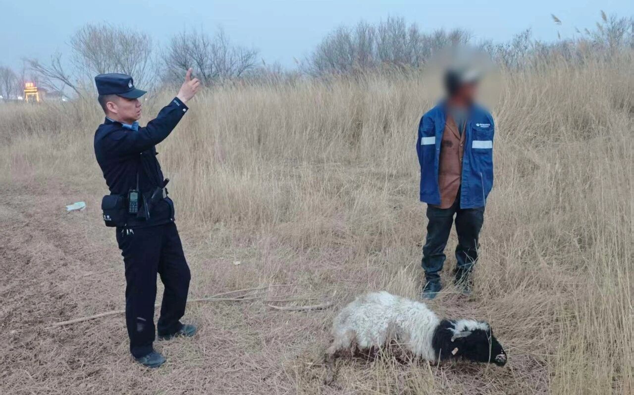 近日,临河派出所民警在黄河沿岸巡逻时,发现一只绵羊深陷泥坑,处境危急,巡逻民警立即对其开展施救,避免二次受伤。成功解救后,民警为羊清理淤泥、检查身体,并通过绵羊耳标与走访找到失主王师傅。王师傅的羊群走失后正在焦急寻找,见到爱羊安然无恙,连连向民警道谢。
