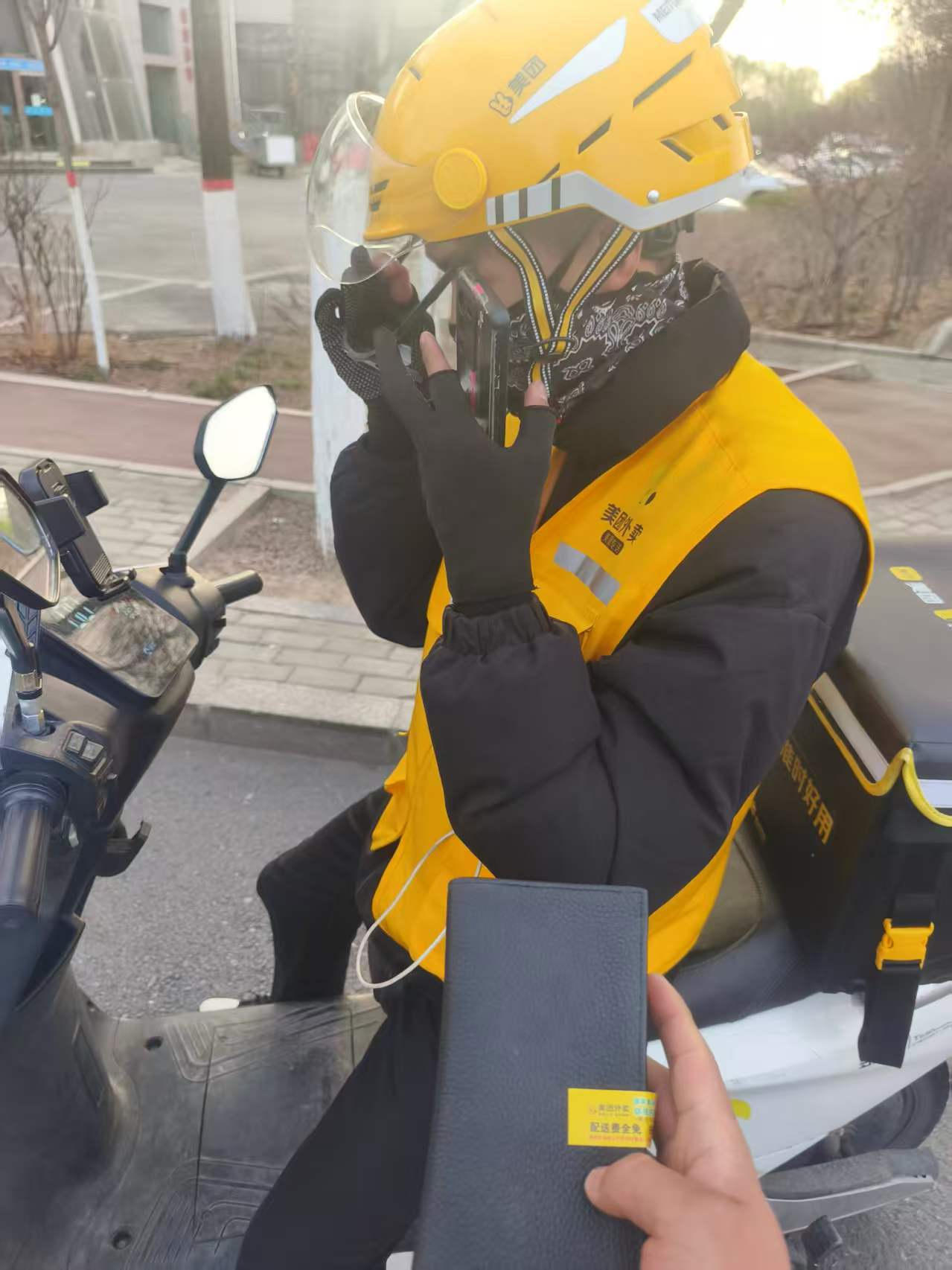这位外卖小哥名叫孙文凯,是一名“07后”。交谈中,他眼神诚恳,却尽显质朴本色。执勤警员打开钱包查看,里面装有身份证、多张银行卡及现金,证件对失主而言意义重大。考虑到孙文凯还有订单要送达,在记录了他的信息和捡拾地点后,安抚他安心送餐,后续事宜由警方负责。