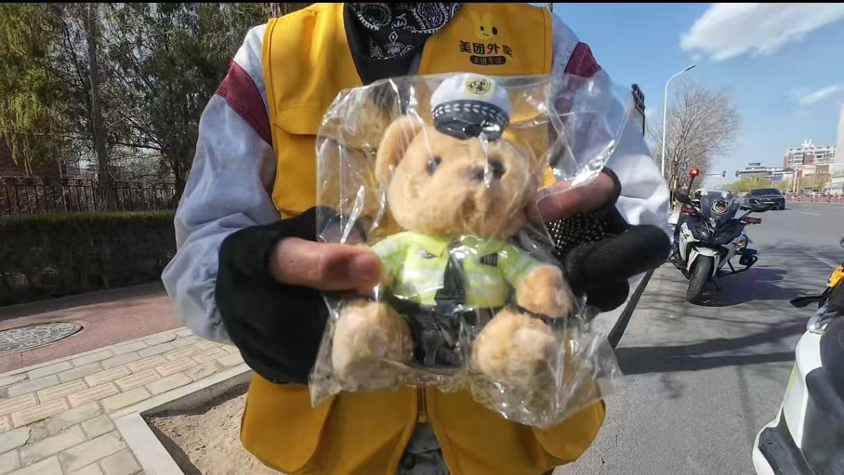 一份信任,一份责任。执勤警员第一时间将钱包移交至辖区派出所,经联系核实后,成功将钱包完好归还失主。为褒奖孙文凯拾金不昧的优良品德,交管大队特意为他送上了“交警小熊”玩偶,对其暖心善举予以表扬,同时号召外卖行业全体从业人员向他学习,共同传递社会正能量。