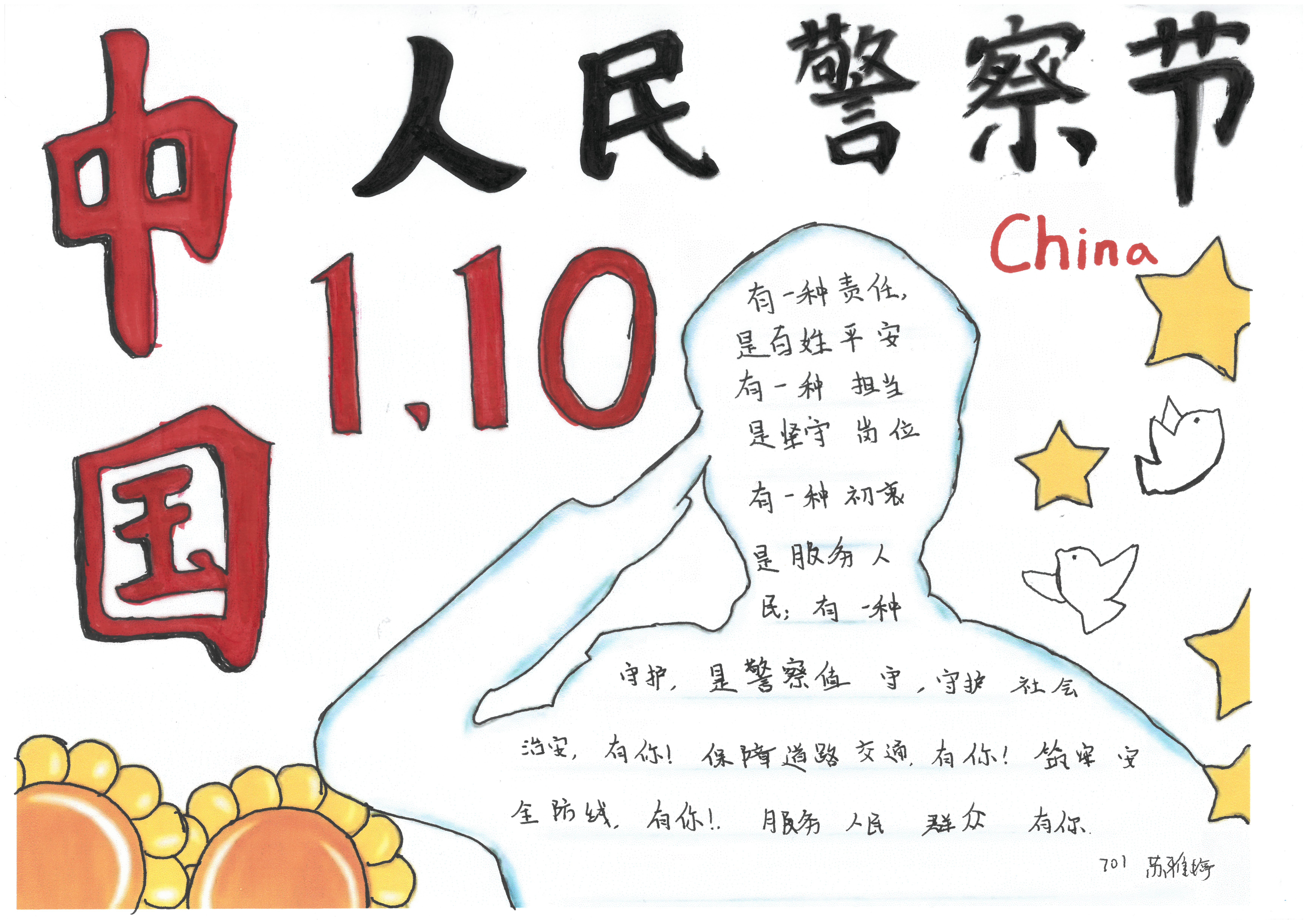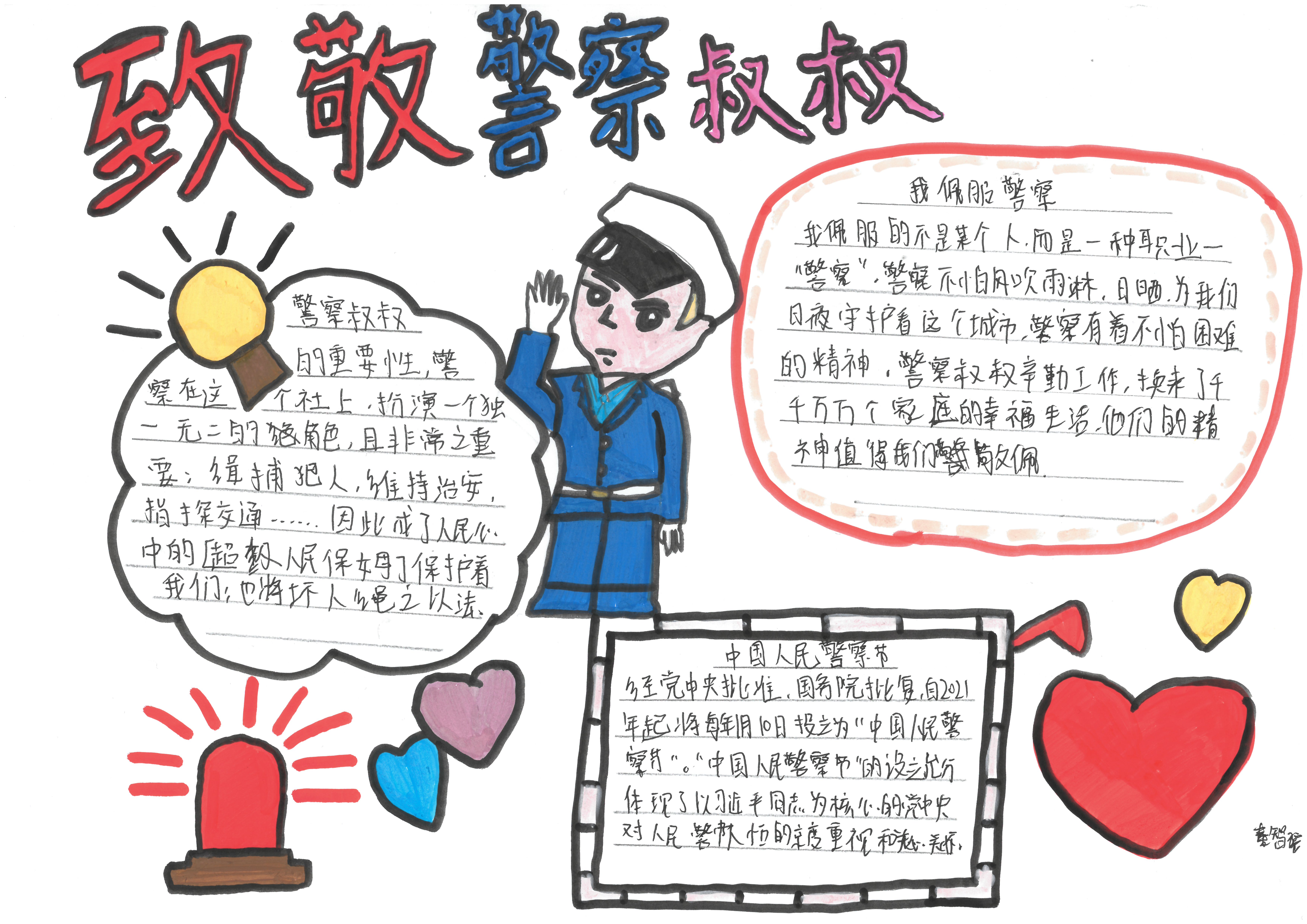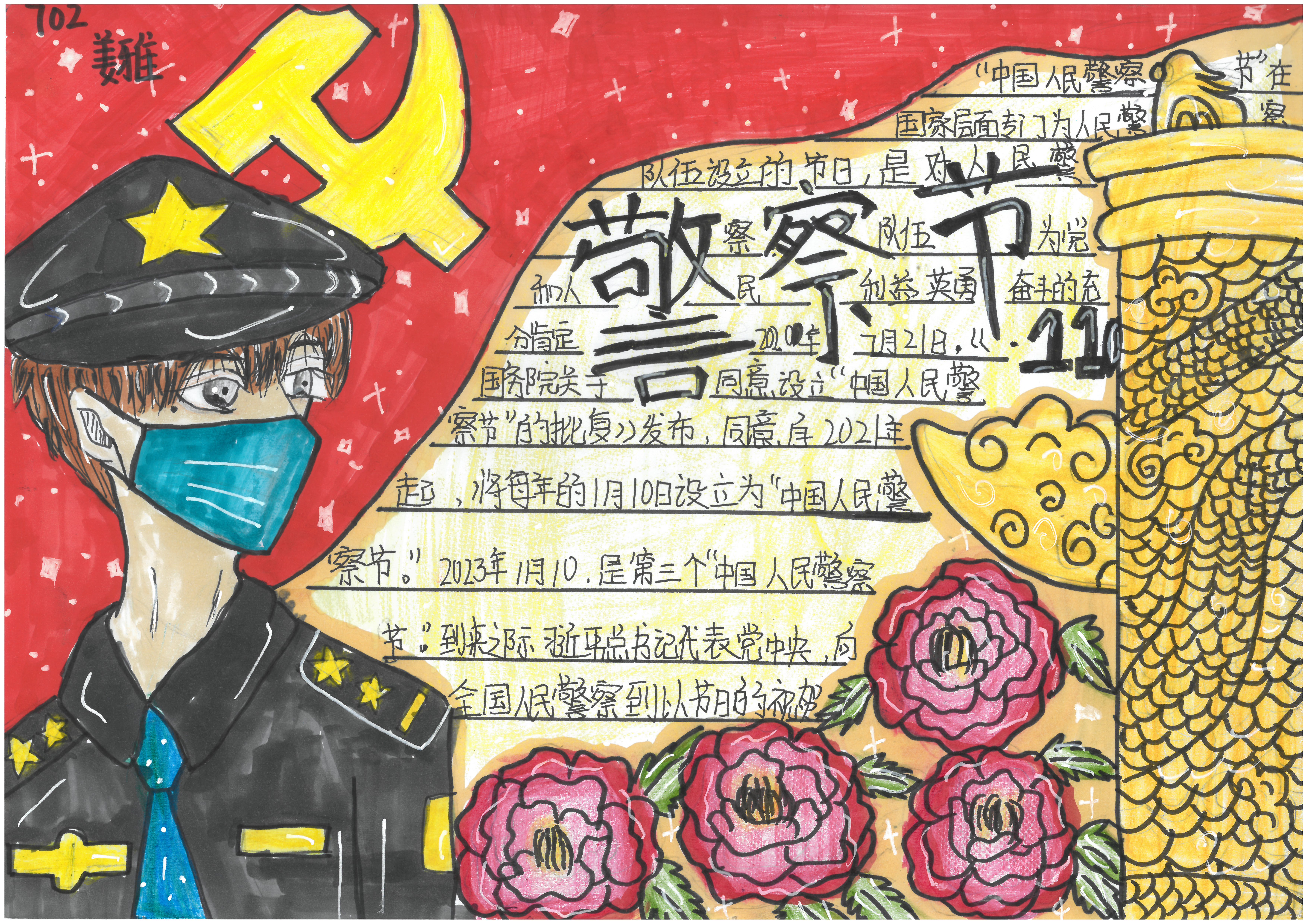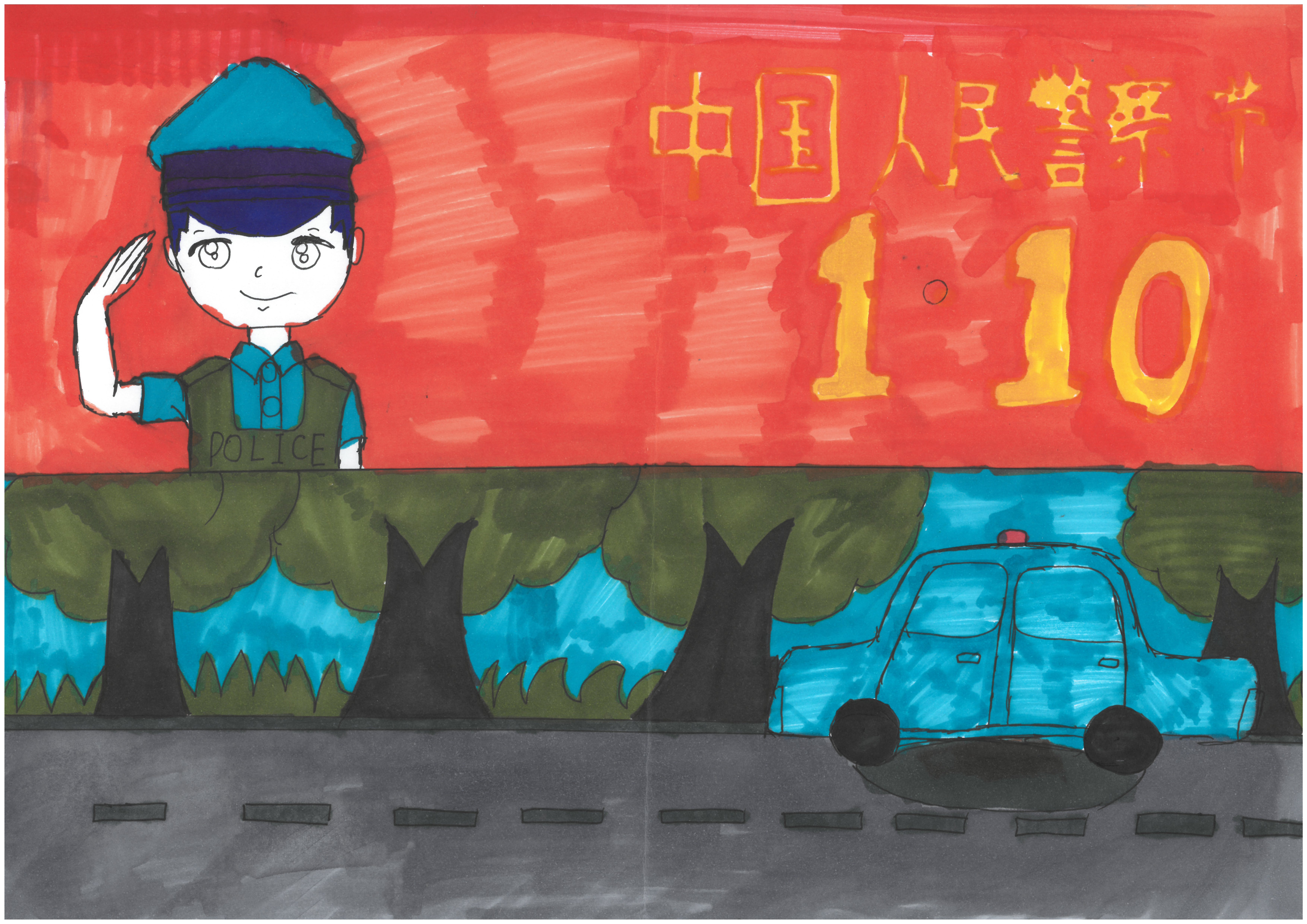 为庆祝中国人民警察节宁东学校的同学们用手中的画笔绘画出了自己心目中的警察形象