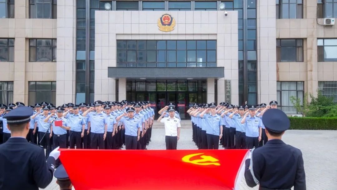 仪式最后,全体民警、辅警面向党旗重温入党誓词。誓词声高亢嘹亮,久久回荡,宣示广大党员民警、辅警筑牢政治忠诚、永葆奋斗本色和捍卫政治安全、维护社会安定、保障人民安宁的坚定决心。