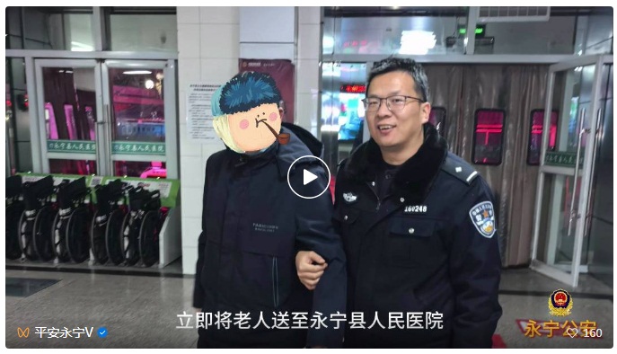 12月17日下午3时左右,王先生的父亲在永宁县人民医院看病后走出医院,结果直到17时30分左右也没有回家。拨打电话无人接听,王先生的心急如焚地拨打110 报警求助。 接到报警后, 永宁县公安局城关派出所值班民警立即开展研判工作,发现老人17日15时许到永宁县医院进行看病检查,做完检查以后便走出医院门口,通过视频追踪,民警发现老人先后到109国道、观湖路、鹤泉湖宁丰街一带,最后沿着宁丰街一路向北,消失在监控盲区中。考虑到天色已晚,民警兵分两组,一组警力在所里调取视频研判侦查,另一组民警带着沿街询问。