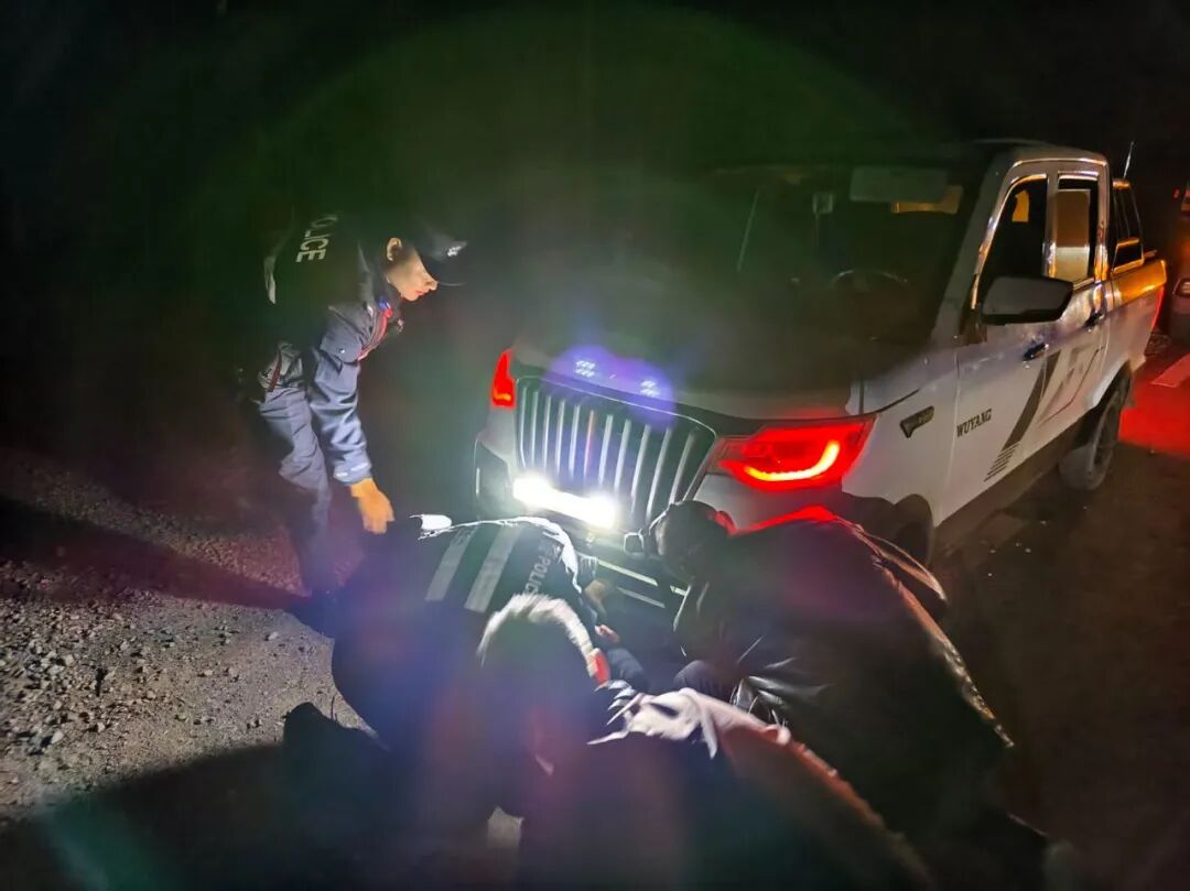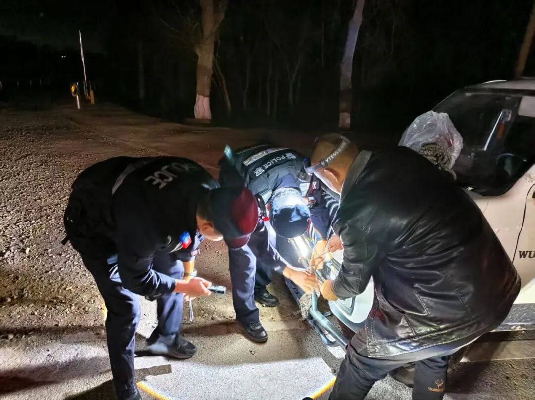 考虑到夜间道路视线差,脱落的保险杠存在安全隐患,且气温较低,民辅警迅速分工协作:一人在车辆后方设置警示标识,提醒过往车辆注意避让;其余人员找来随车工具,仔细查看保险杠脱落情况,后找到一根绳子,合力将保险杠复位并进行临时加固。经过20余分钟的努力,车辆恢复正常行驶条件。