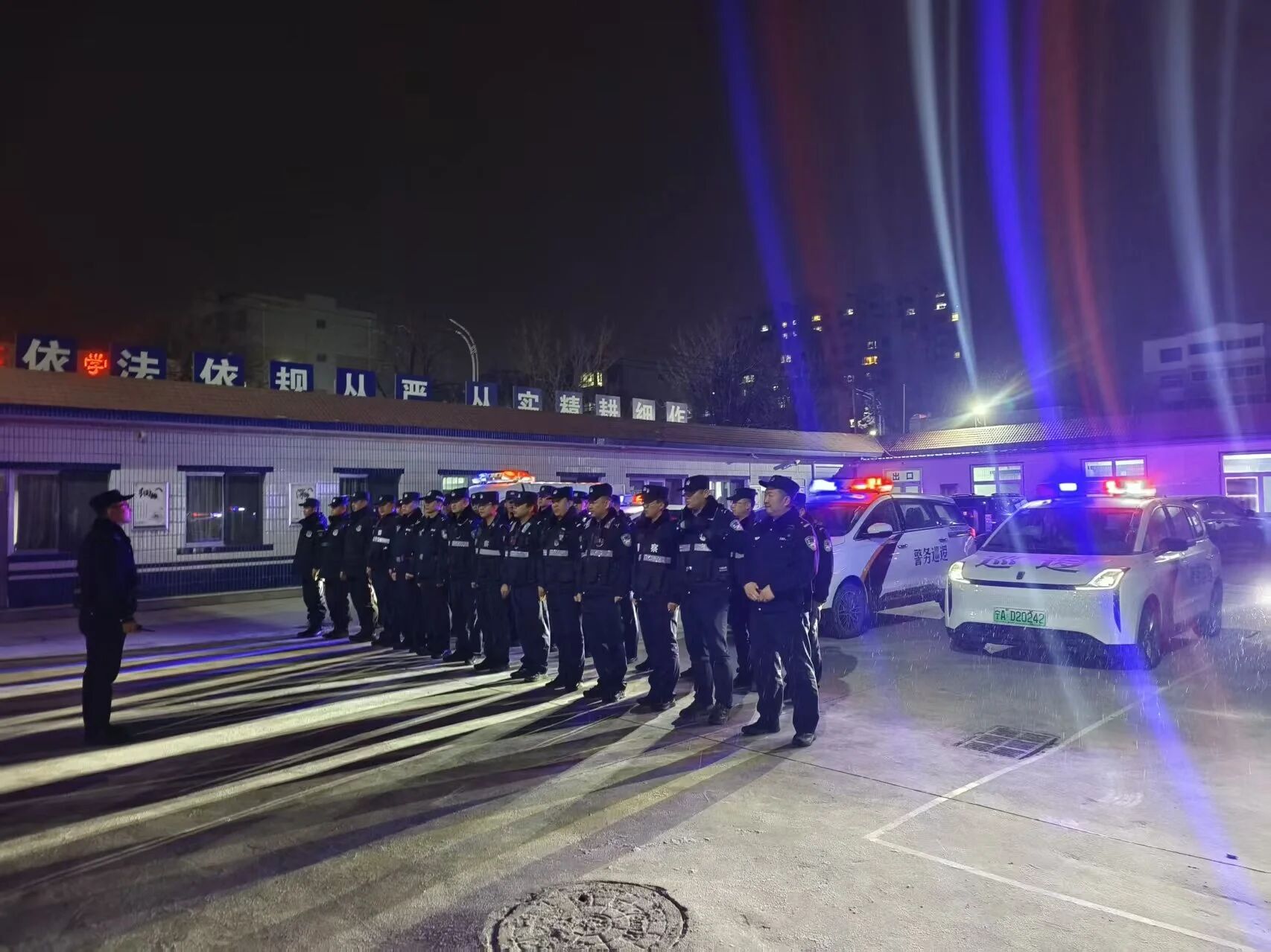 局党委委员、副局长翁宁向坚守岗位的民辅警致以节日问候与诚挚祝福。他指出,元旦安保工作责任重大、使命光荣,全体人员要以高度的责任感和使命感投入工作,坚守岗位、履职尽责,用实际行动守护辖区平安。亲切的祝词在温暖人心的同时,也进一步激发了民辅警的工作热情与担当精神,大家纷纷表示将以最佳状态投入安保工作,坚决守住辖区平安防线。