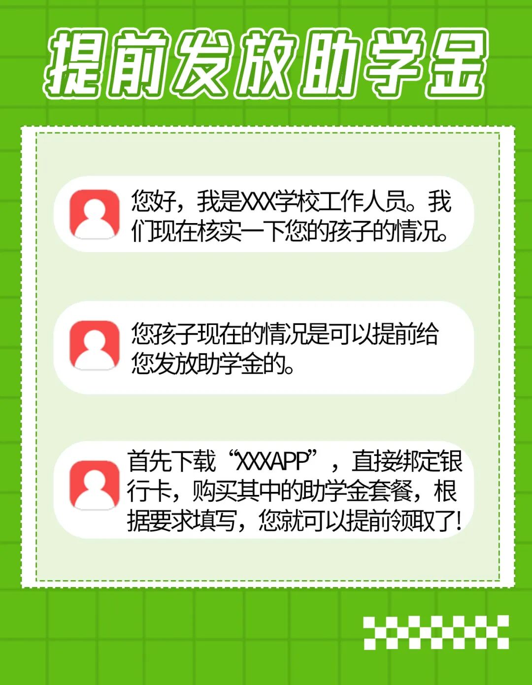 一旦家长点开了链接,手机就可能被链接中包含的木马病毒所感染,继而被骗子转账导致损失了钱财。