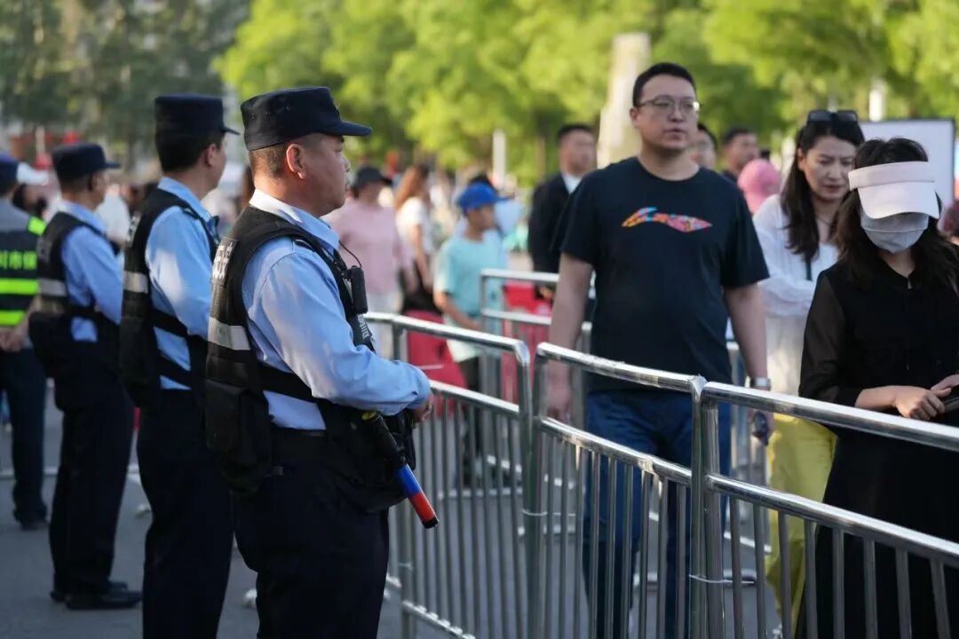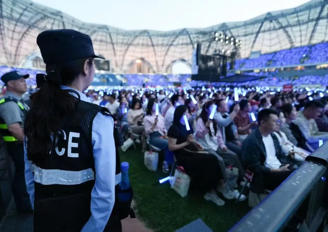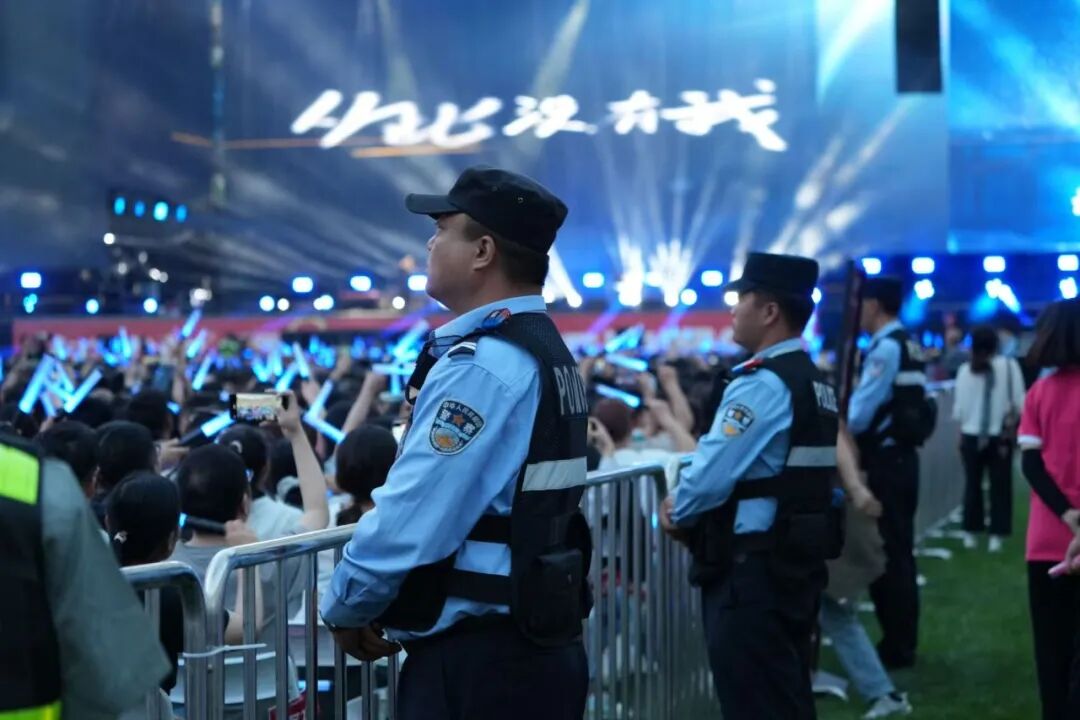 演唱会期间,各警种部门协同配合、紧密协作,执勤民警辅警对安全护栏、警戒线、检票口、观众区、舞台区等场馆内外及周边区域加大治安巡查及值守力度。提前发布临时交通管制通告、演唱会出行指引,对停车场设置、车辆引导、重点时段交通管控路线及远端管控措施进行了细化明确,引导市民游客合理选择出行路线。