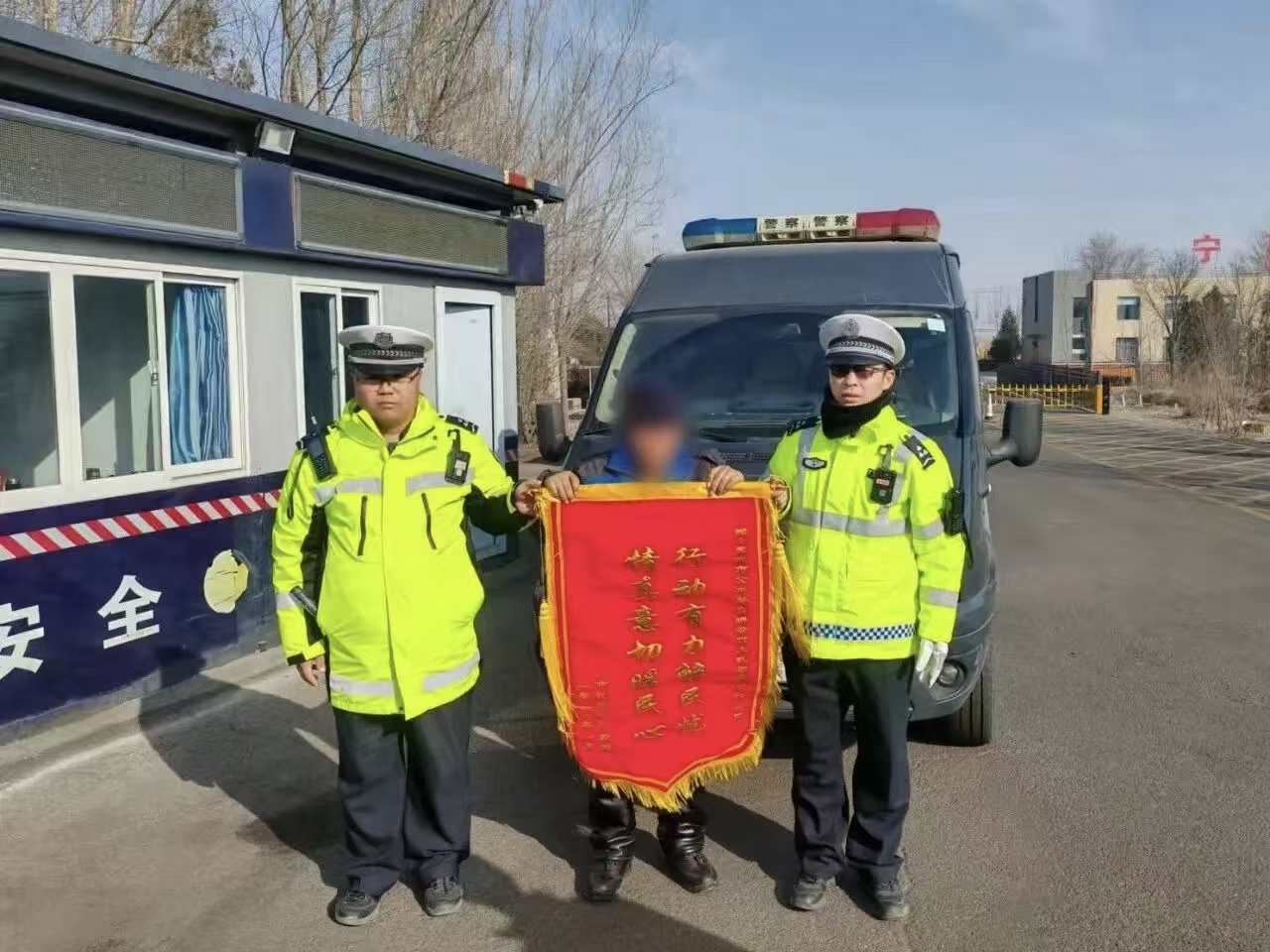 民警辅警见状,立即将老人扶上警车,并开启暖风驱寒,随后驱车将其安全送至两公里外的派出所新址,确认老人妥善安置后,悄然返回工作岗位。四天后,老人专程赶来,将一面印有“行动有力解民忧,情真意切暖民心”的锦旗送到民警辅警手中,以表谢意。