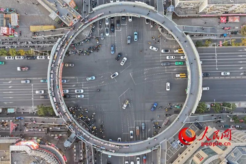 2021年初,有网友在人民网“领导留言板”建议修建天桥。银川市听取建议,计划建设“环形”天桥。这座天桥2021年9月开工、2022年4月投用,建成后,不仅实现人车分流,人行上桥率超70%,还同步优化了道路标线、增设了非机动车过街标线,昔日“一锅粥”的路口成了融合商业、旅游、文化功能的城市新地标。