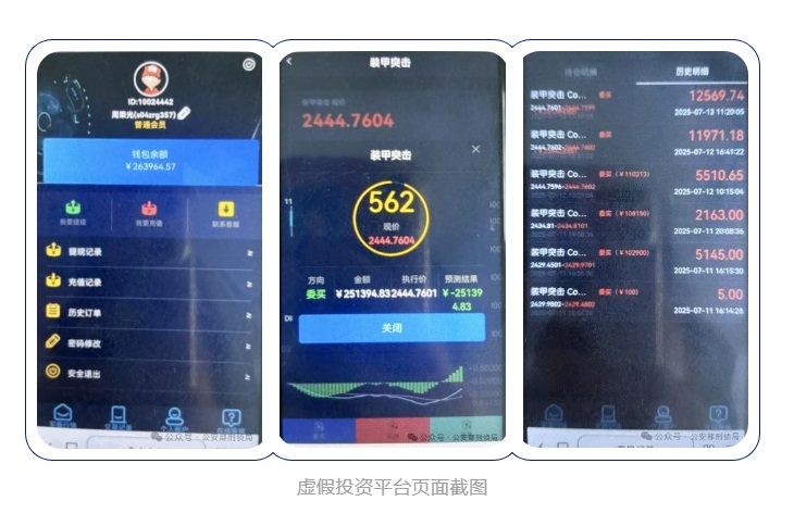 确立恋爱关系后,诈骗分子谎称有“内幕渠道”和“稳赚不赔”的投资机会。诈骗分子为获取受害人信任,会主动提供虚假账户让受害人看到“巨额收益”。当受害人信以为真并投入资金,骗子便以“保密”“避监管”等借口,最终要求线下现金交易或向指定账户大额转账。