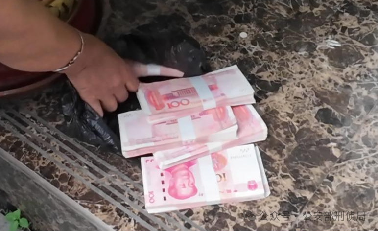 民警现场拦截的5万元现金照片