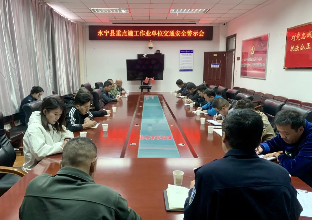 为进一步加强我县道路交通安全管控,规范辖区道路施工现场安全防护工作,预防和减少因道路施工引发的各类交通事故,提高路面施工人员的安全意识,确保国庆假期期间辖区道路交通安全平稳畅通、有序。9月29日上午,永宁县公安局交警大队组织辖区重点施工作业单位相关负责人在大队二楼会议室召开交通安全警示会。