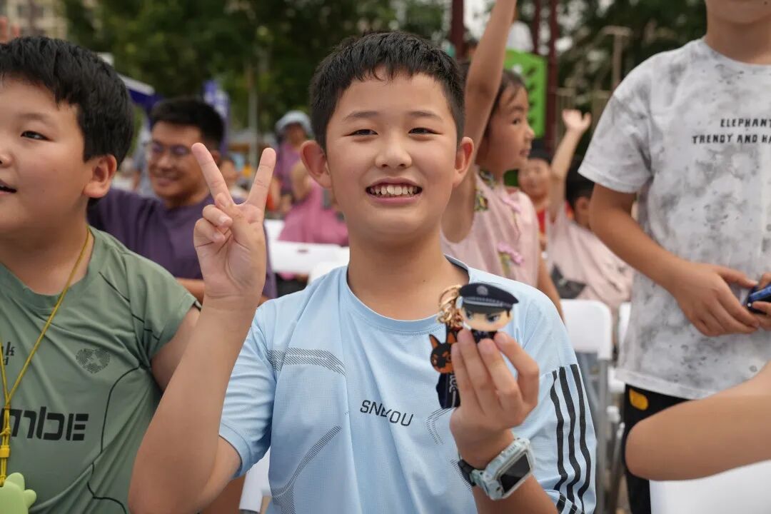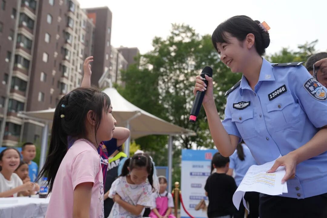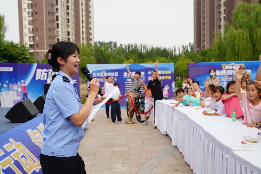 最热闹的当属反诈互动问答环节。常雨康和反诈中心的民警辅警们走下讲台和社区群众互动,小朋友们像小树苗般齐刷刷举起小手,抢着回答问题,有的踮着脚尖使劲够向话筒,有的拽着家长衣角急切喊着 "我知道"。“陌生短信里的链接能随便点吗?为什么呢?” 阅海万家 B 区的乐乐像小炮弹般冲上前:“不能点!刚才警察姐姐讲了,会中病毒盗密码!” 答对问题的他接过反诈小礼品,举着向其他小伙伴骄傲挥手,现场瞬间变成充满童趣的反诈小课堂。