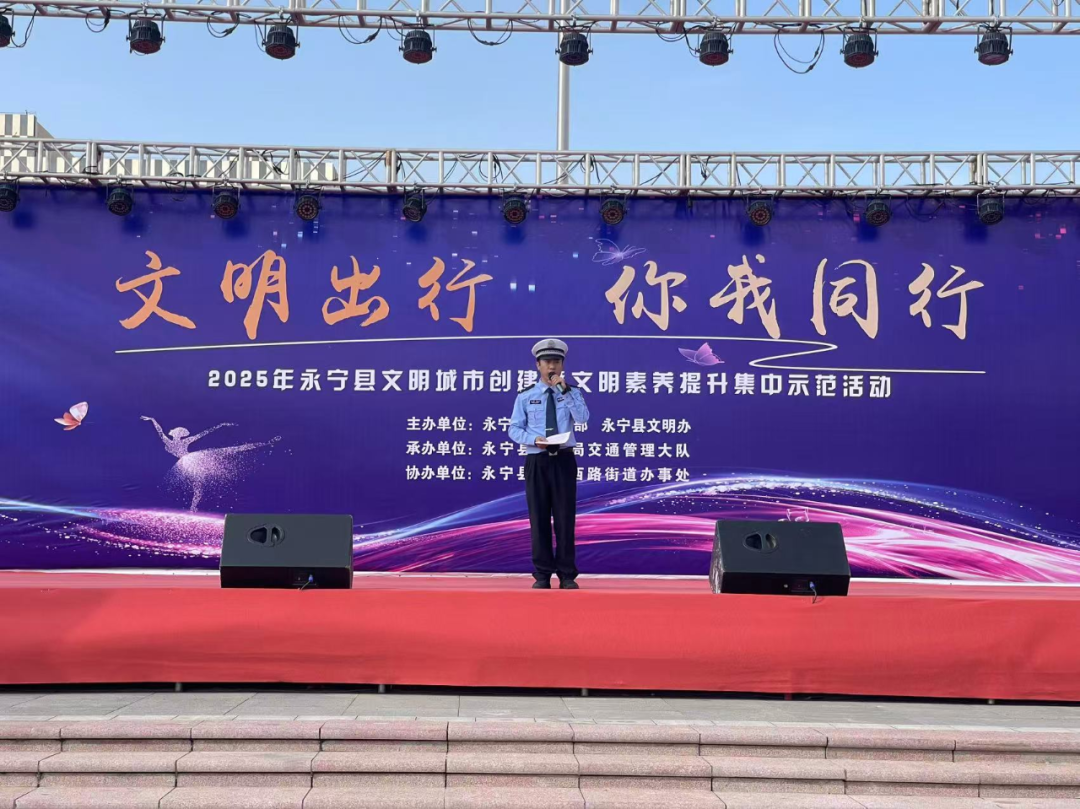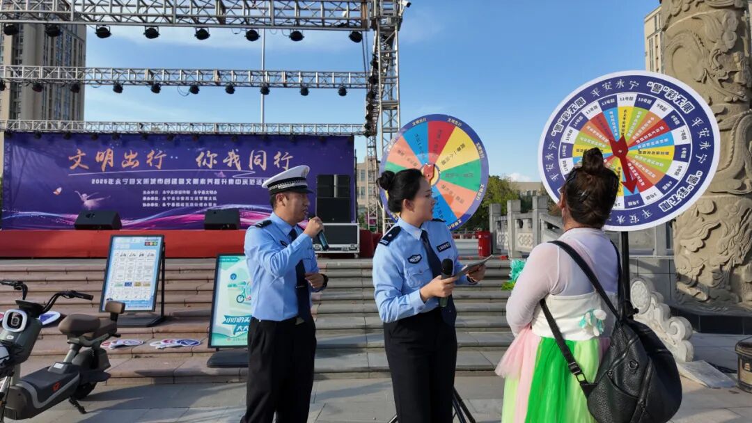 为进一步提升社区居民交通安全意识,筑牢道路安全防线。9月19日,永宁县公安局交通管理大队联合永宁县南环社区开展交通安全主题宣传活动,通过“宣讲+展演+互动”的形式,为居民带来了一场生动实用的交通安全“盛宴”。