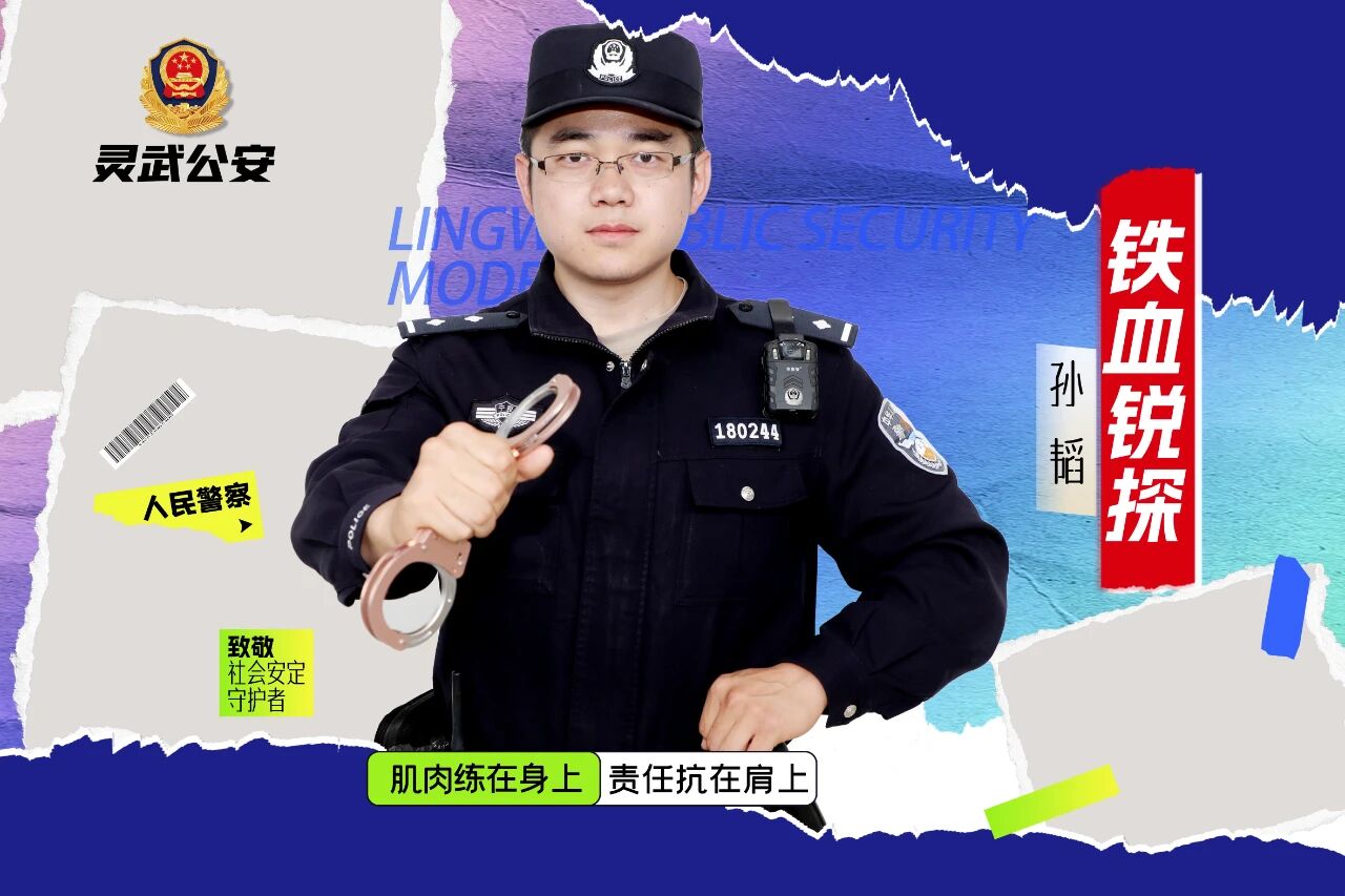 在灵武市公安局临河派出所,群众常能见到一个高大挺拔的身影——身着警服、肌肉线条分明的他,眉宇间透着坚毅,笑容里藏着亲和。他是95后社区民警孙韬,人称“铁血锐探”。这个绰号不仅源于他一身硬朗的体格,更因他雷厉风行的工作作风和锐意创新的为民情怀。
