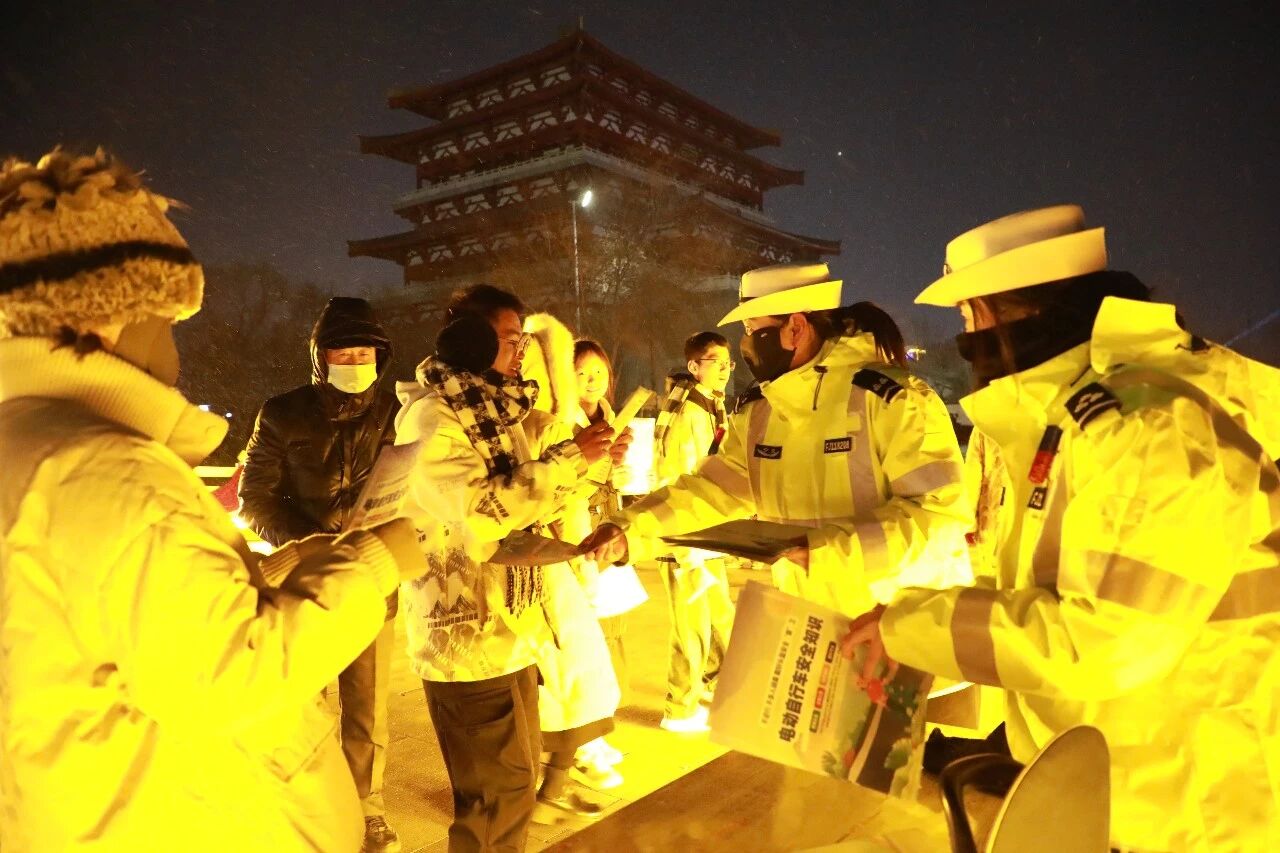 2025年12月31日晚,“遇见灵州・唐韵华章”灵武市古城跨年夜活动在灵武市西湖公园璀璨启幕,民谣演唱、唐风快闪、无人机表演等丰富活动吸引大批群众参与。为确保活动安全有序,灵武市公安局高度重视、提前谋划,严格恪守“严密防范、确保安全”核心原则,以“预防为主、安全第一”为导向,周密部署警力执勤,全流程织密平安防线,用藏蓝坚守与责任担当,为这场文化盛宴筑牢坚实安全屏障,圆满完成此次跨年夜活动安保任务。