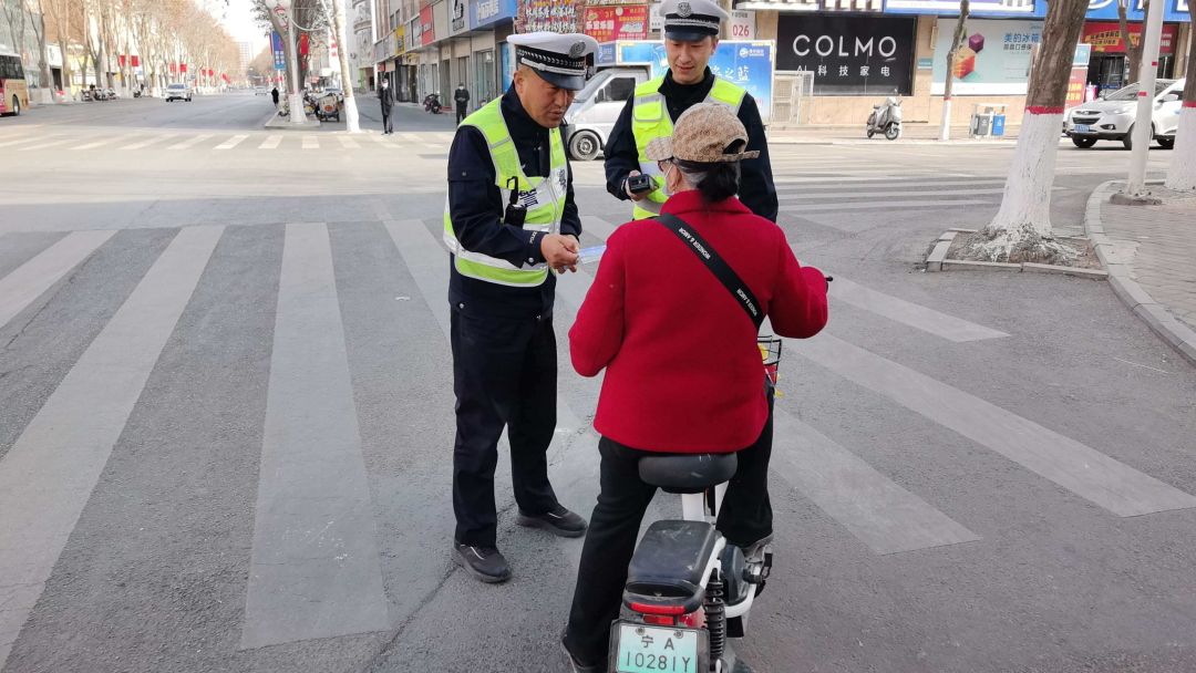 在摩电车辆专项整治工作中,大队民辅警以路面执法为抓手,在辖区主次干道、城乡结合部、农村路口等摩电车辆通行密集区域,开展专项整治的同时,向过往摩电车辆驾驶人、沿街商户、社区居民发放办理指南小卡。民辅警现场面对面讲解电动摩托车属于机动车的管理要求,普及“上牌、持证、戴盔、投保”的安全出行准则,针对群众关心的上牌流程、材料准备、准驾车型、保险购买等问题逐一答疑,手把手指导业务办理步骤,引导群众主动前往永宁县车管所办理注册登记业务。同时,结合护学岗、农村“两站两员”劝导、“美丽乡村行”“七进”等宣传活动,向学生家长、农村群众、重点行业从业人员等群体发放小卡、现场宣讲,切实提升群众对摩电车辆管理政策的知晓率和参与度,营造“人人懂法规、主动办业务”的良好氛围。