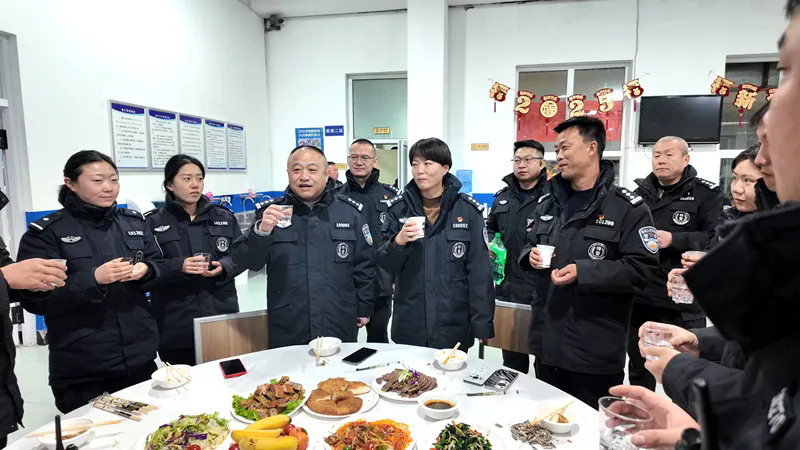 “感谢大家一年来忠诚履职、果敢亮剑,为银川特警工作高质量发展做出了巨大贡献,希望大家在新的一年不忘初心,砥砺前行!”特警支队党委书记、支队长赵晓刚代表支队党委用茶水向大家致以新春祝福,祝福刚从冰天雪地的户外巡逻归来在场的战友、祝福即将准备去接班开始下一班巡逻离场的战友、也祝福还在外面冒着严寒巡逻站岗的战友,保卫安全的重任在身,虽然战友们不能团圆,但在大年三十的团圆夜,战友们却感受到了集体的温暖,也让大家的心走到了一起,共赴荣辱。