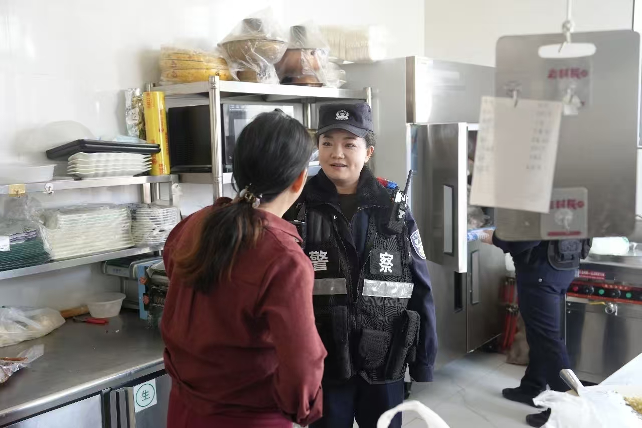 刚忙完反诈宣传,刘艳又马不停蹄赶往村里的餐厅,开展节前安全检查。从消防器材的有效期到后厨卫生,她看得仔细、查得认真,一边检查一边跟餐厅负责人沟通整改细节,“过年就餐的人多,安全这根弦一刻也不能松,这些细节一定要落实到位。”