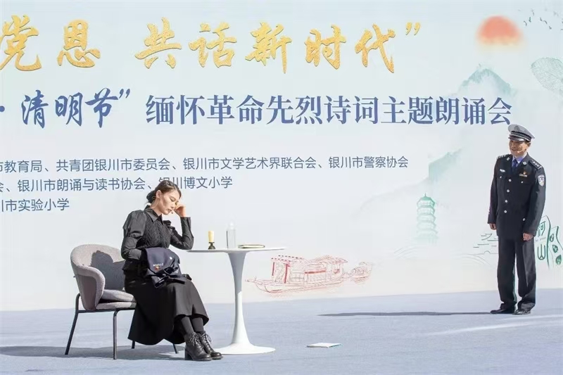 灯光渐暗,一束追光打在舞台中央。音乐如水般漫起,时空对话交织,舞蹈与诗朗诵层层叠进,台上演员一遍遍哽咽地喊着“春华”……这是“致敬·缅怀·奋进—英雄不朽 山河永忆”2026年全国公安系统清明音乐朗诵会上催人泪下的一幕。银川公安倾力编排的原创节目《星辰如你 誓言无声》,把全国公安系统二级英雄模范、因公牺牲民警杨春华37年的从警生涯一点一点铺陈开来——那些没日没夜的坚守、那些来不及说出口的话,都化作了舞台上一次颤抖的转身、一声压抑的哭腔。台上的战友在演,台下的战友在看,全国的观众也在看。那一刻,忠诚不再是抽象的词,而是一个个有温度的名字、一段段可以触摸的人生。这场跨越屏幕的追思,让无数人潸然泪下,也让银川公安“文化育警”的实践第一次以如此隆重的姿态进入全国视野。